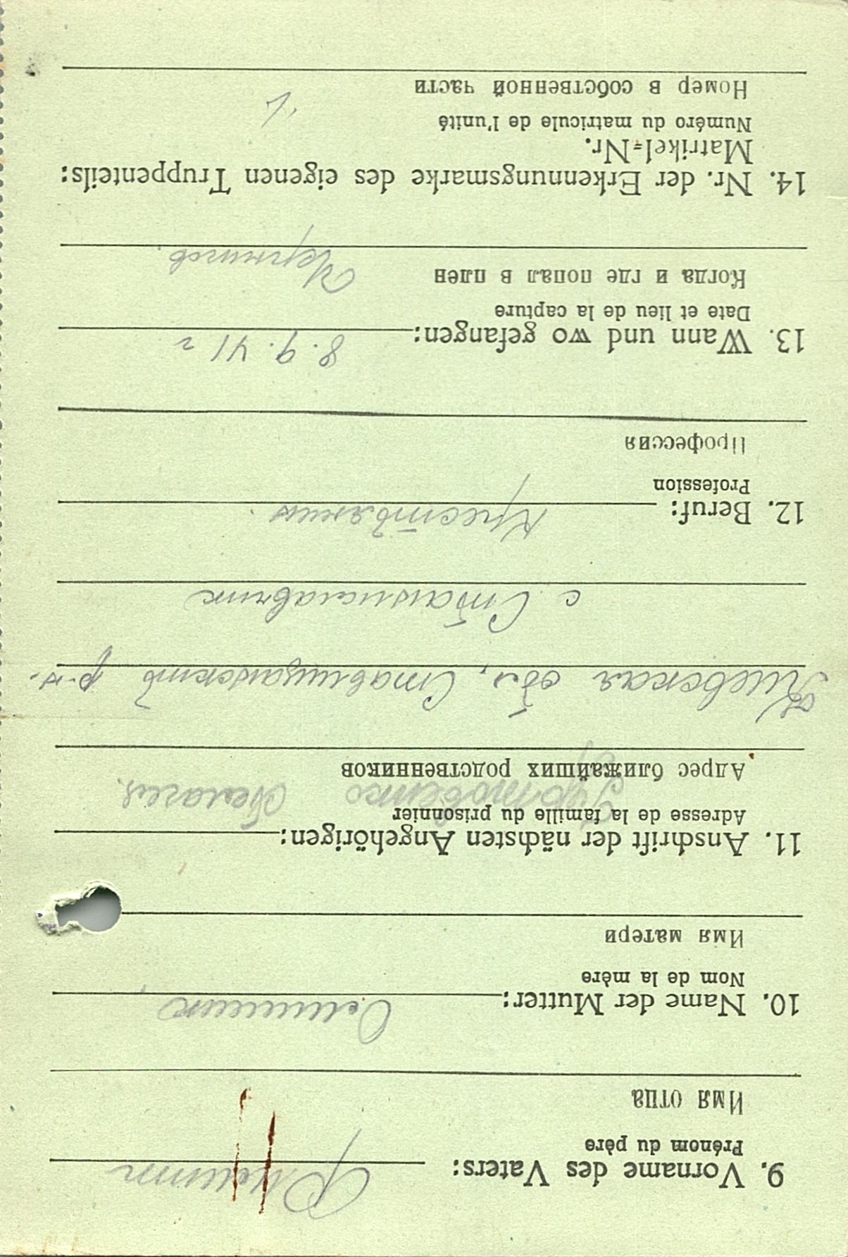 Военнопленные, трофейные карточки. Киевская обл.