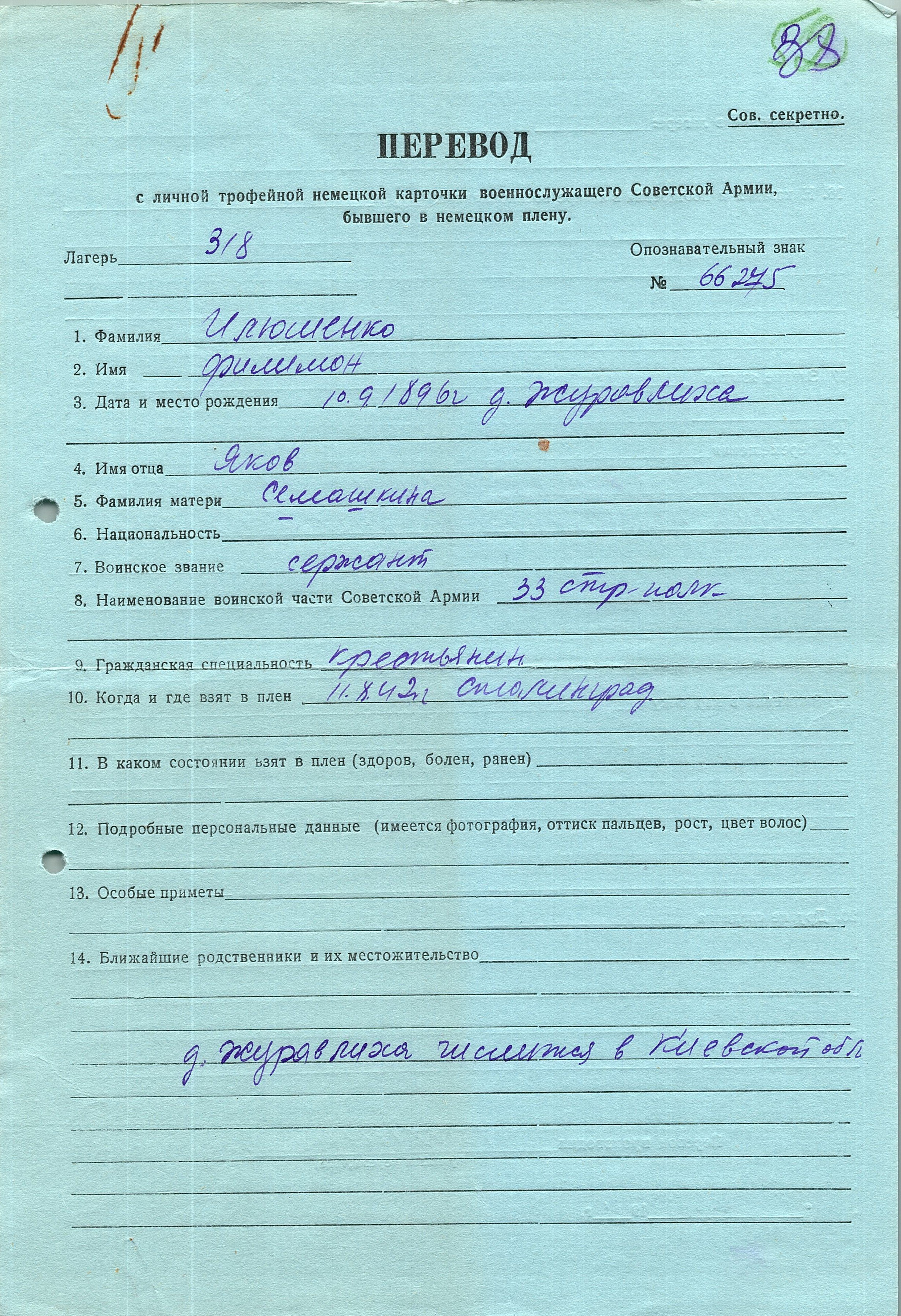 Военнопленные, трофейные карточки. Киевская обл.