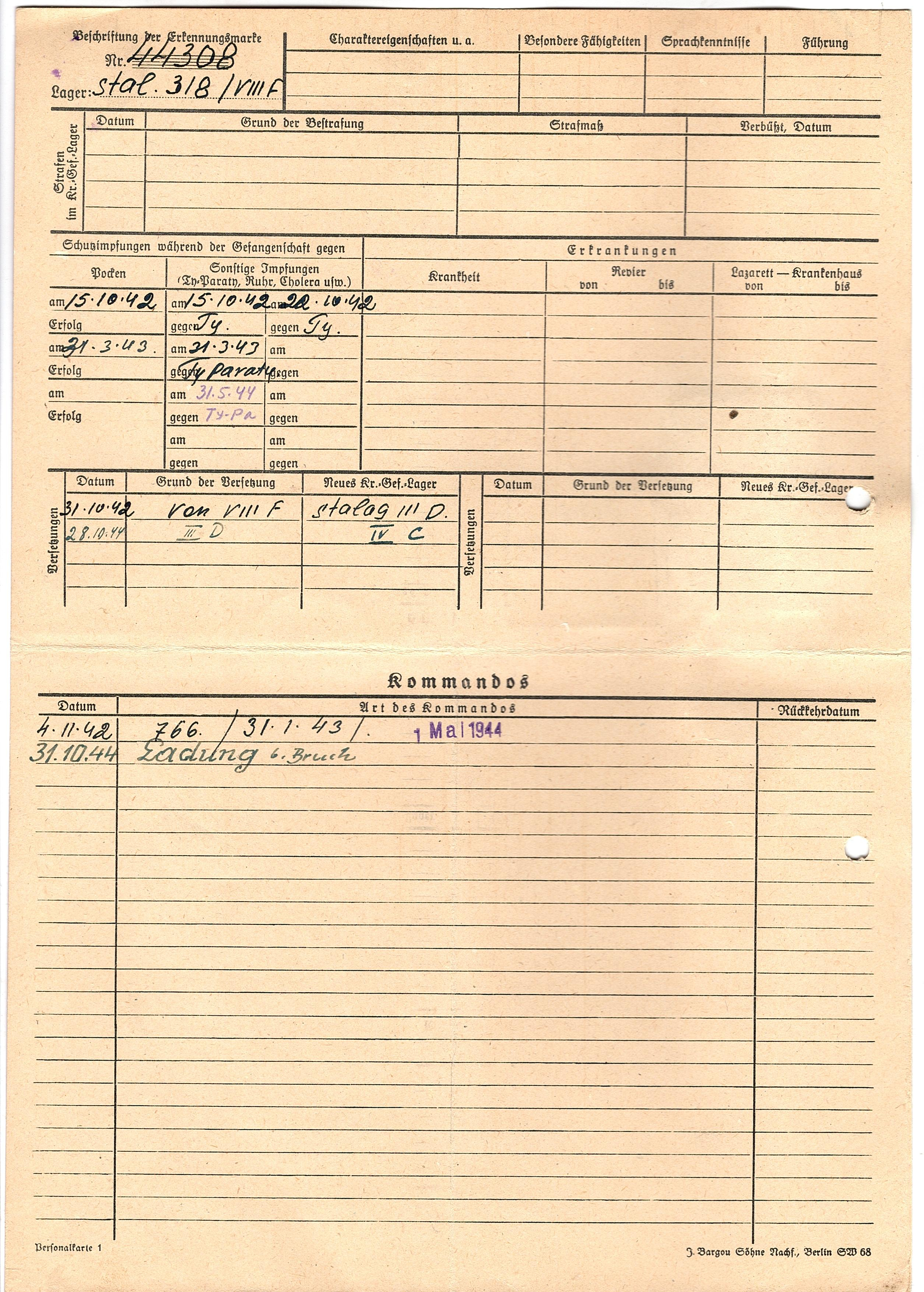 Военнопленные, трофейные карточки. Киевская обл.