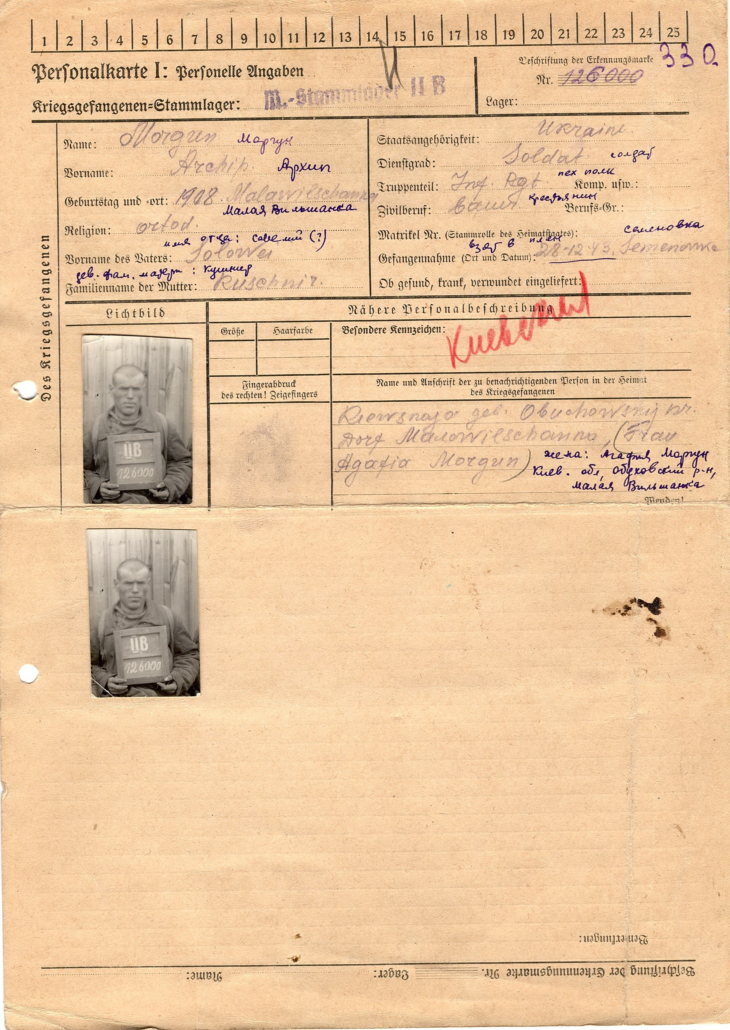 Военнопленные, трофейные карточки. Киевская обл.