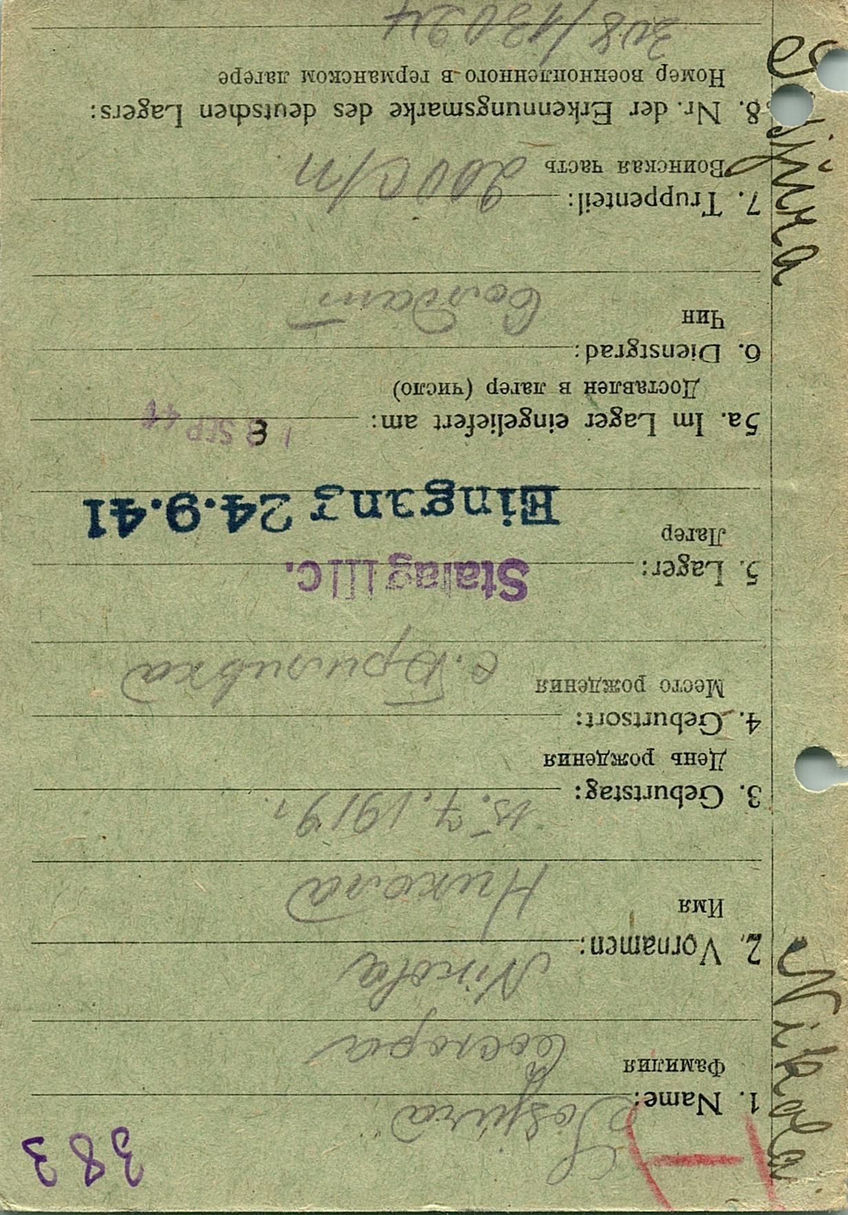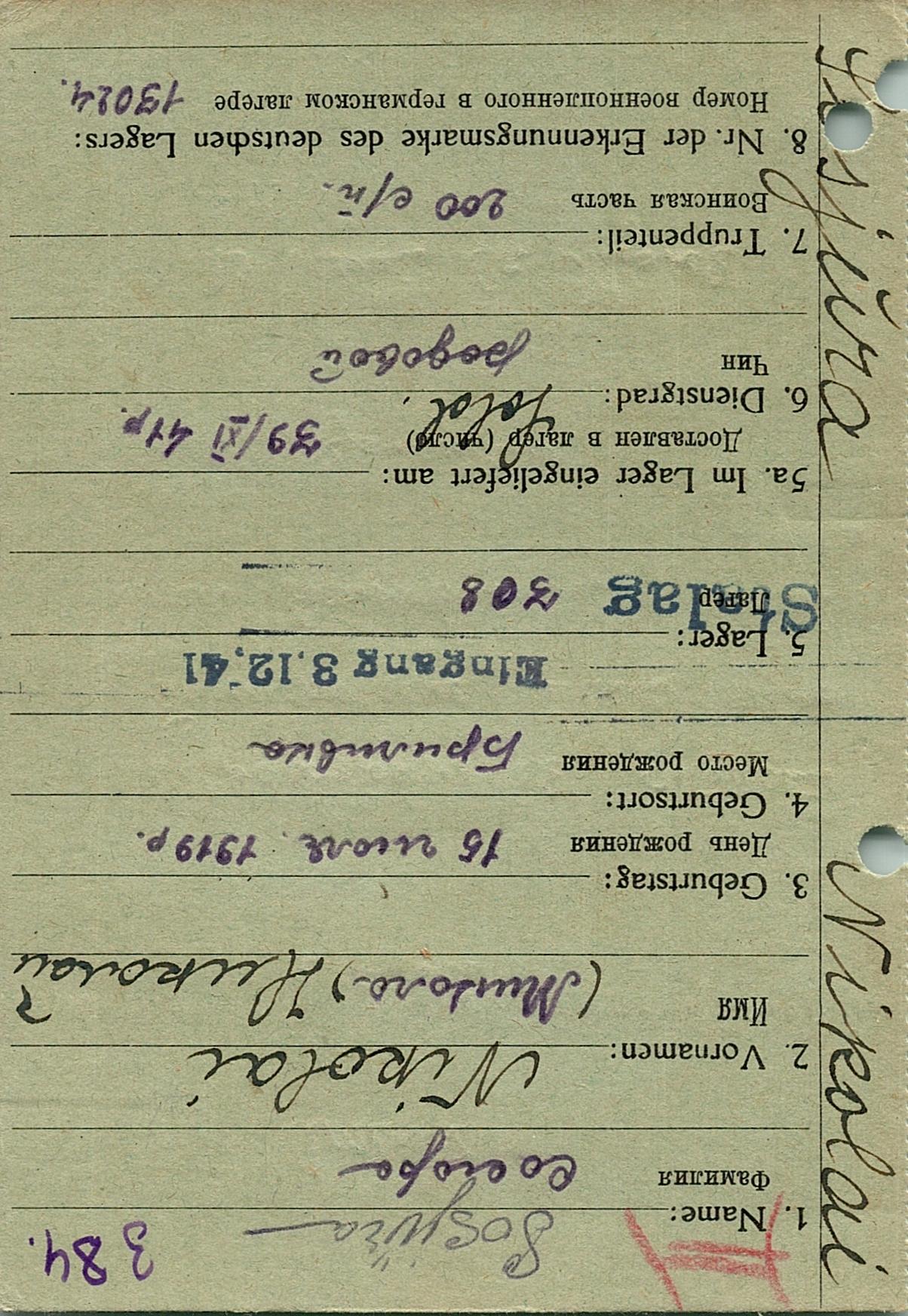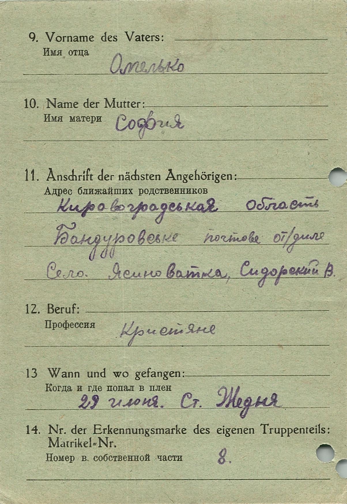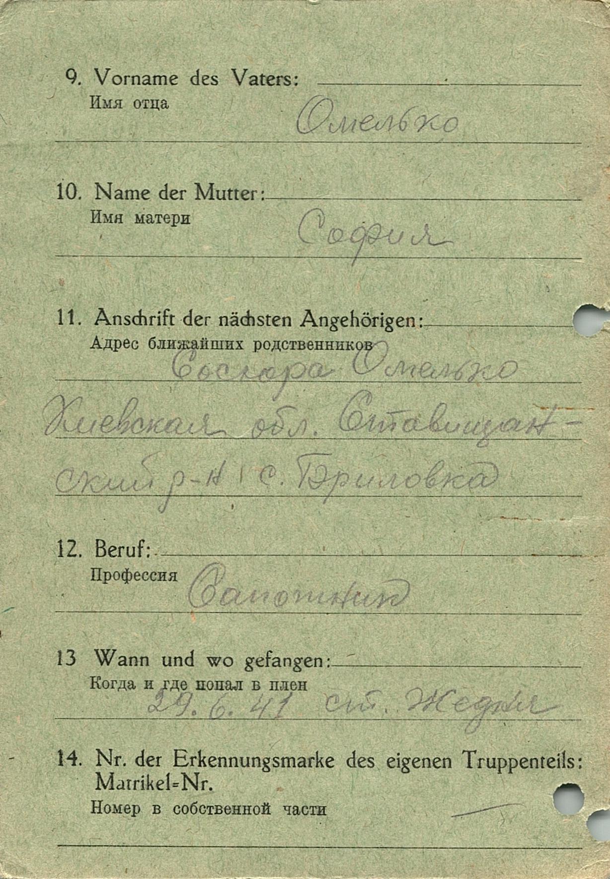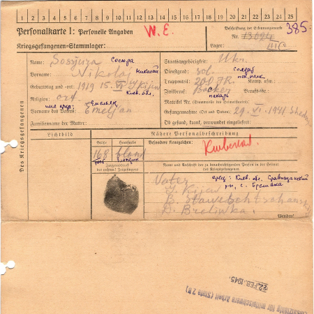Военнопленные, трофейные карточки. Киевская обл.