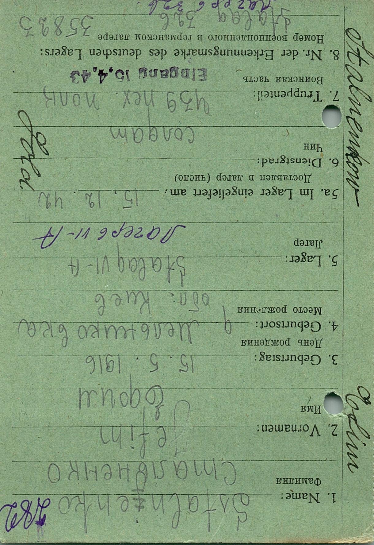 Военнопленные, трофейные карточки. Киевская обл.