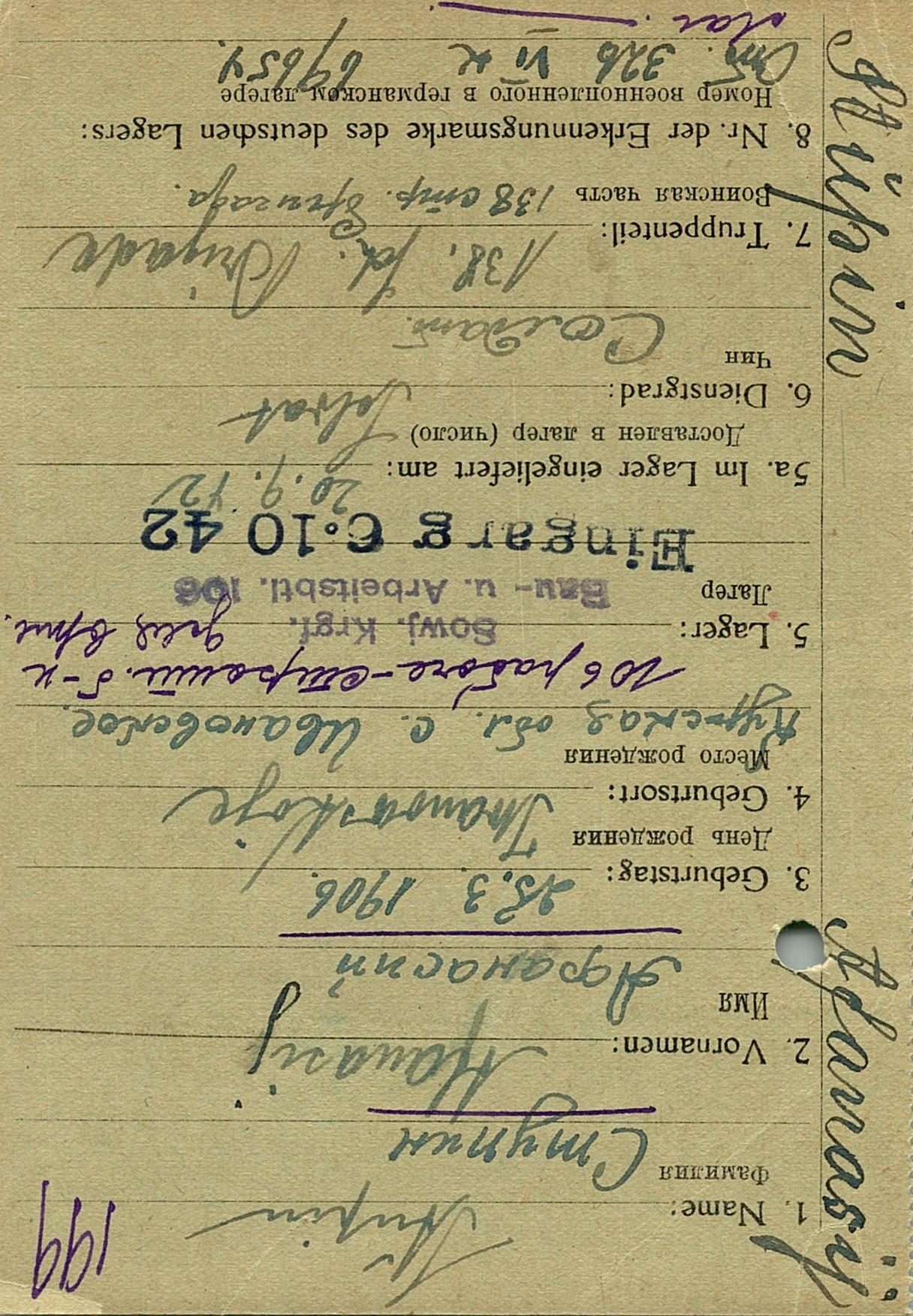 Военнопленные, трофейные карточки. Киевская обл.