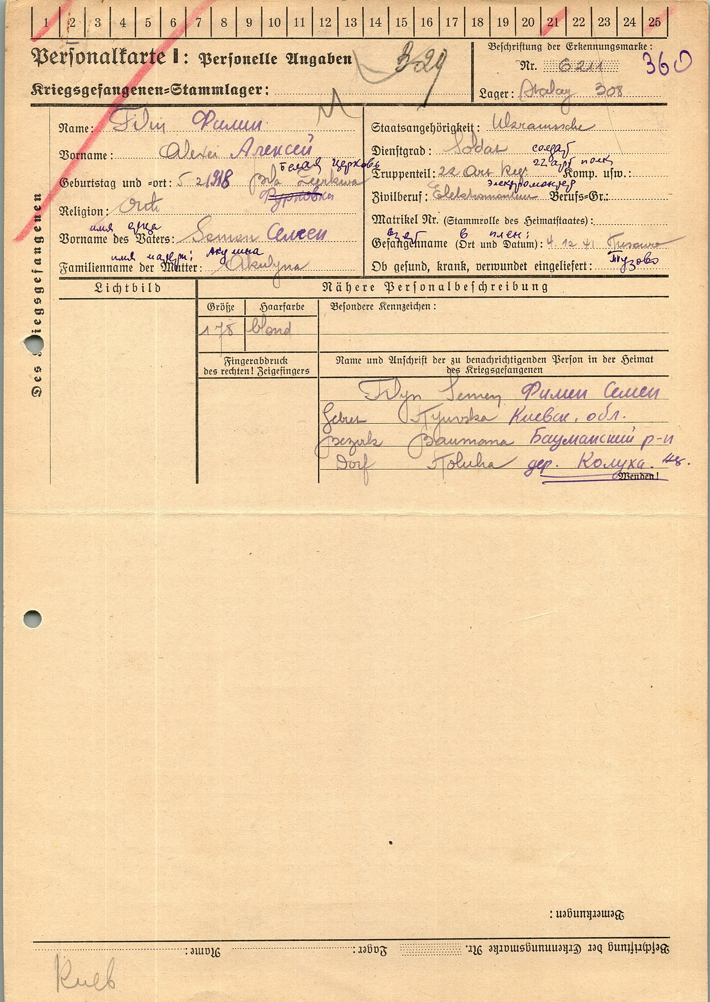 Военнопленные, трофейные карточки. Киевская обл.