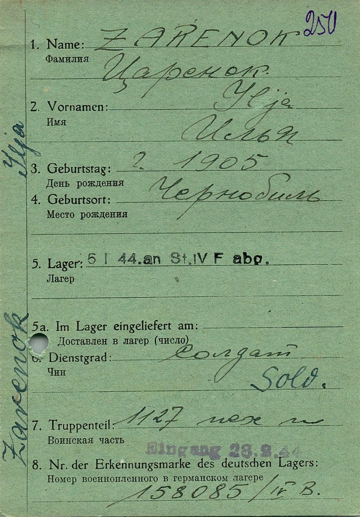 Военнопленные, трофейные карточки. Киевская обл.