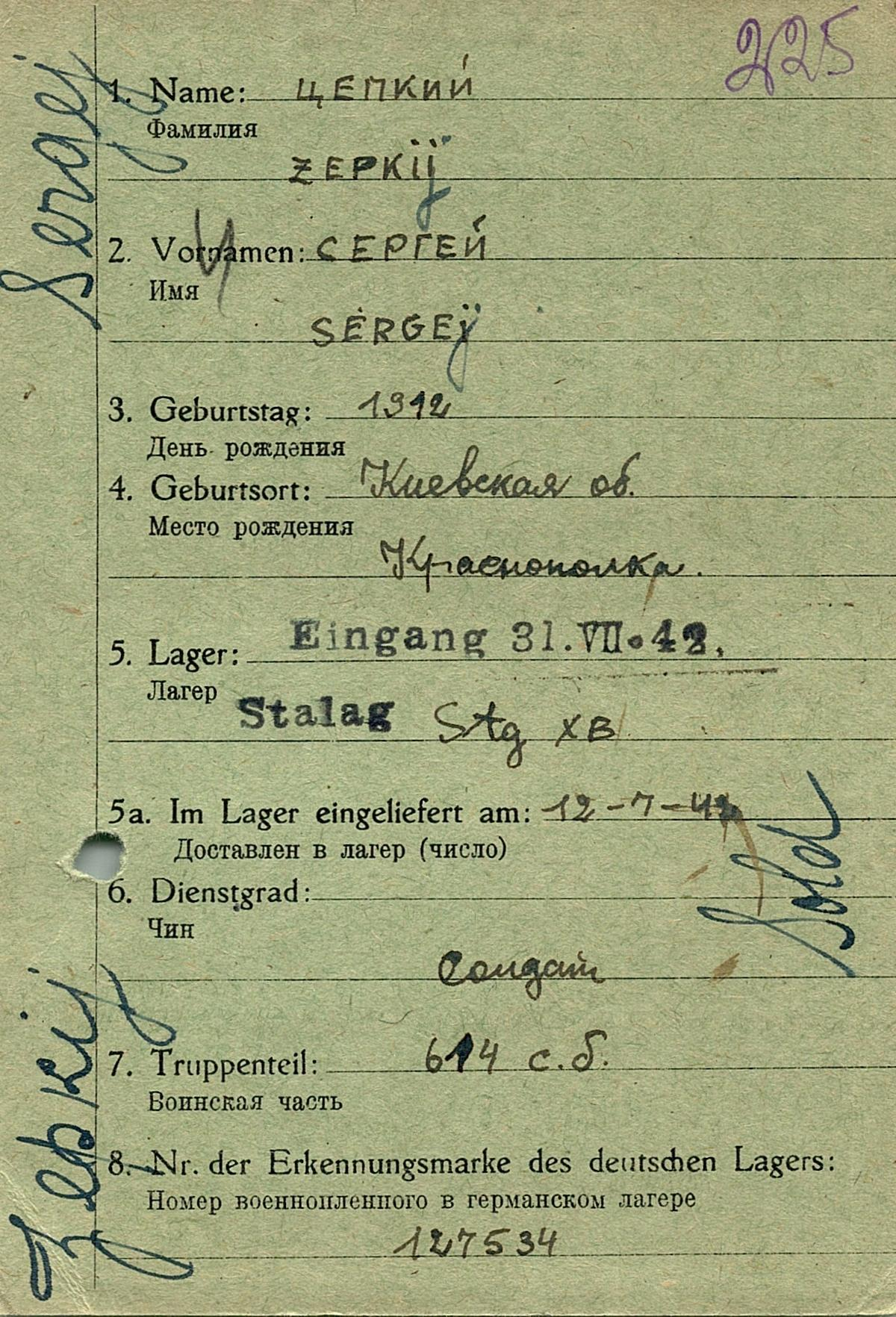 Военнопленные, трофейные карточки. Киевская обл.