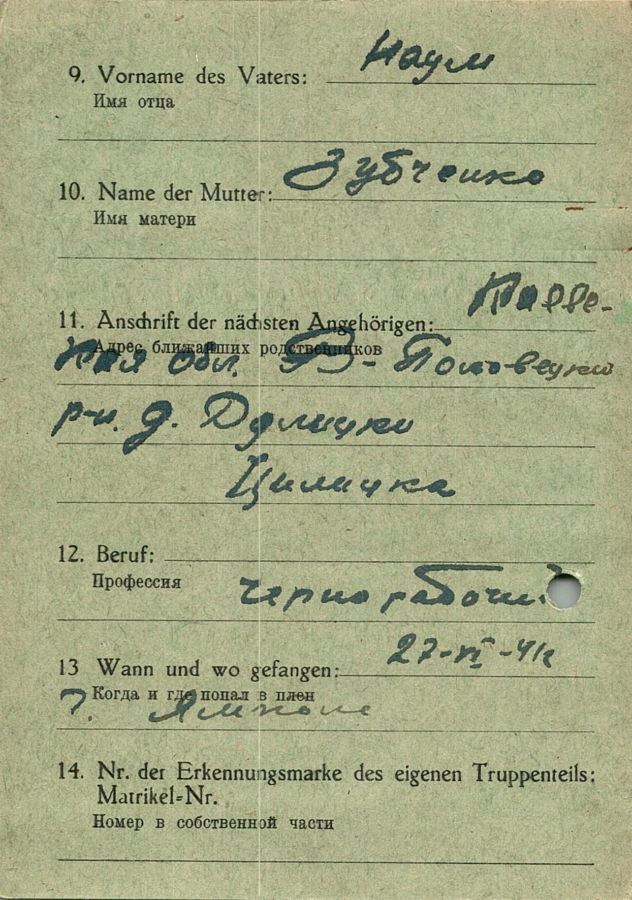 Военнопленные, трофейные карточки. Киевская обл.
