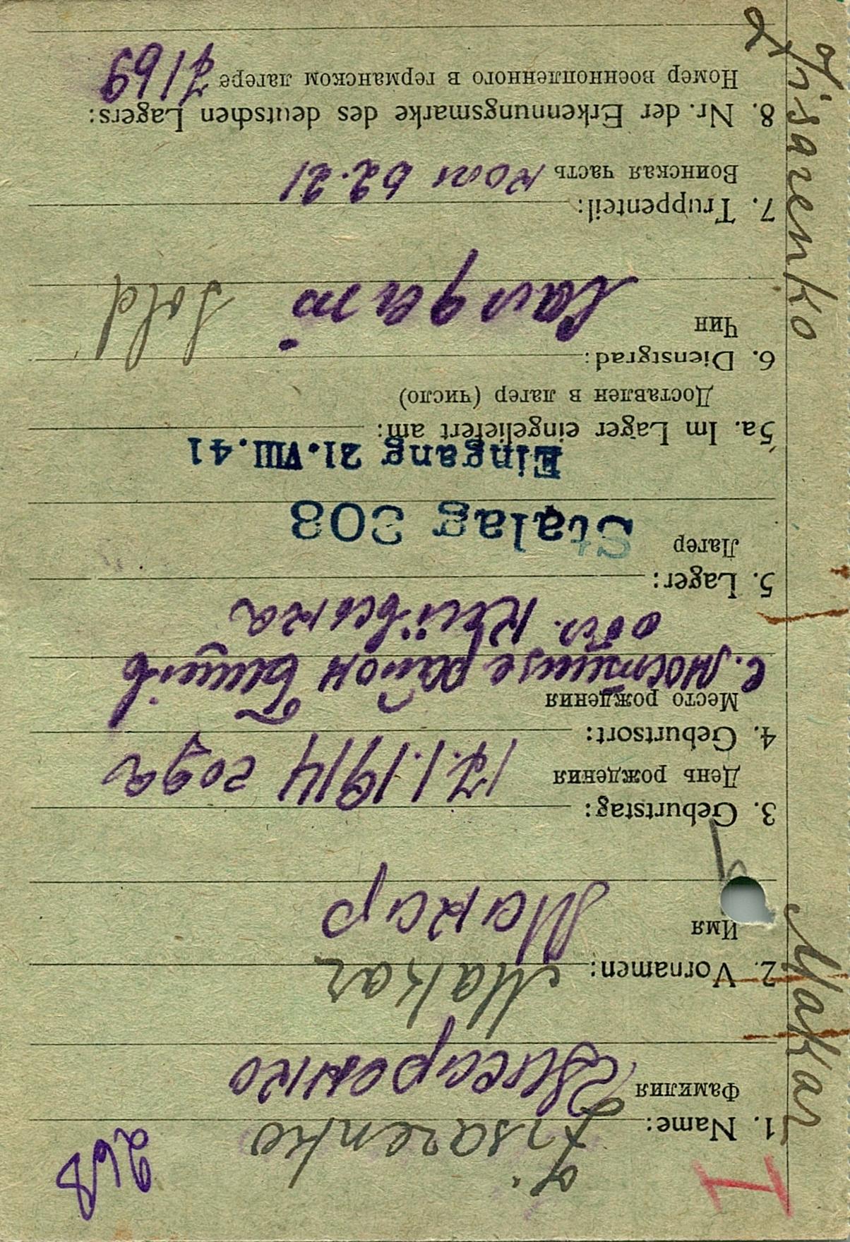 Военнопленные, трофейные карточки. Киевская обл.