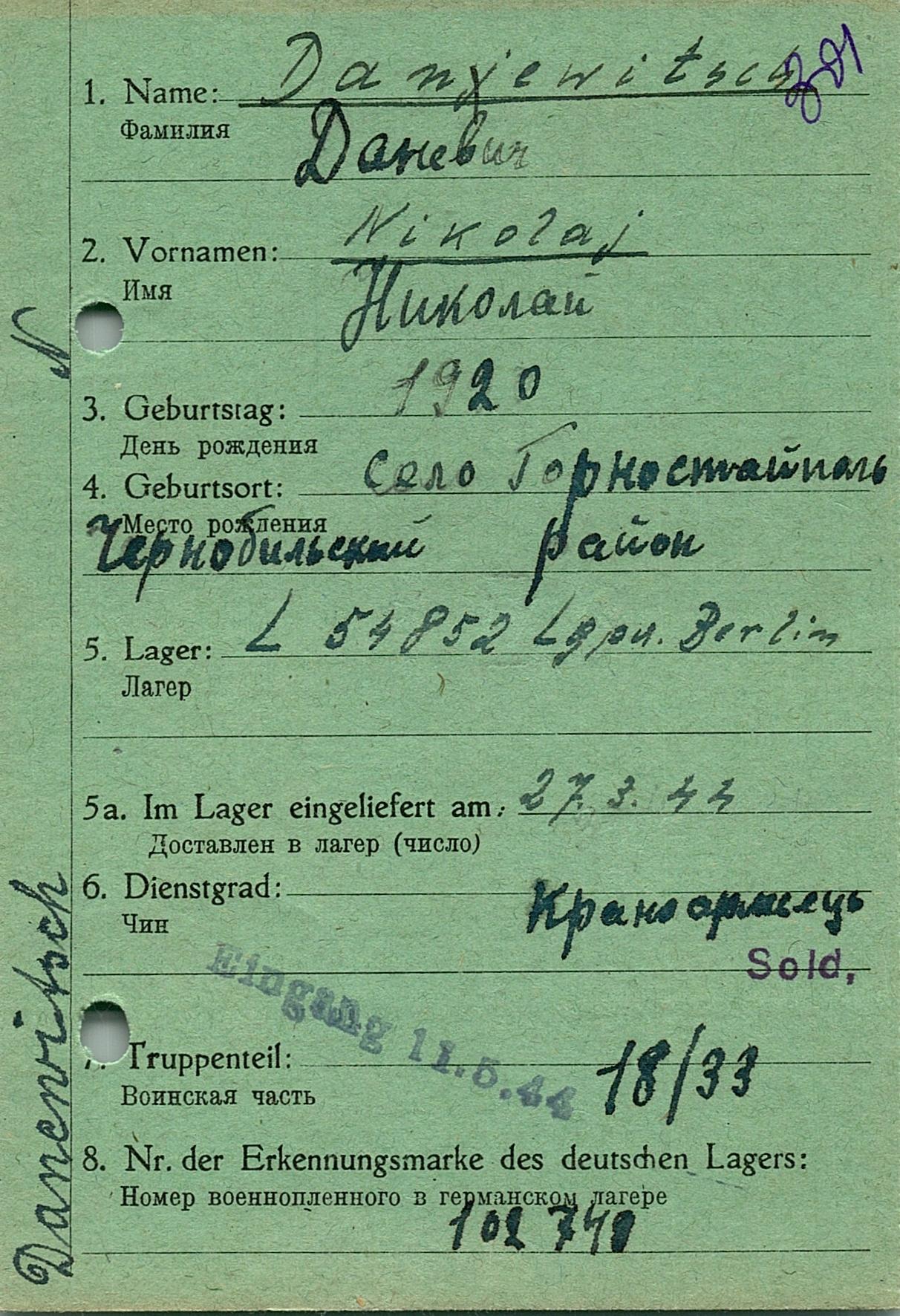 Военнопленные, трофейные карточки. Киевская обл.