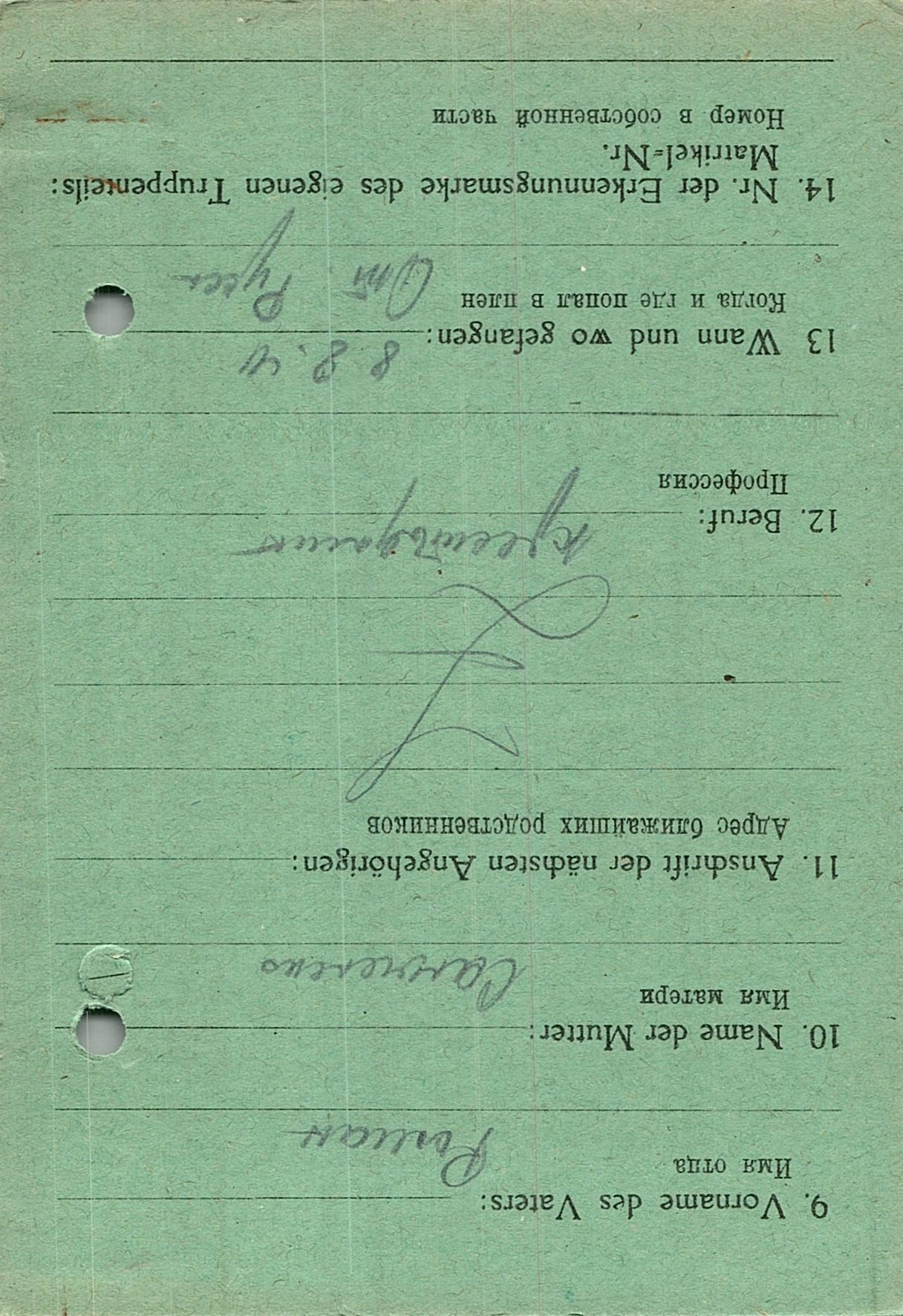 Военнопленные, трофейные карточки. Киевская обл.