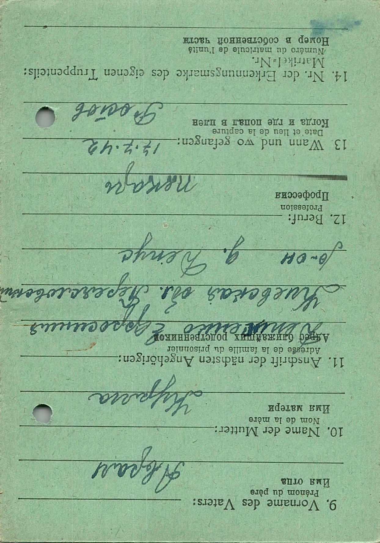 Военнопленные, трофейные карточки. Киевская обл.
