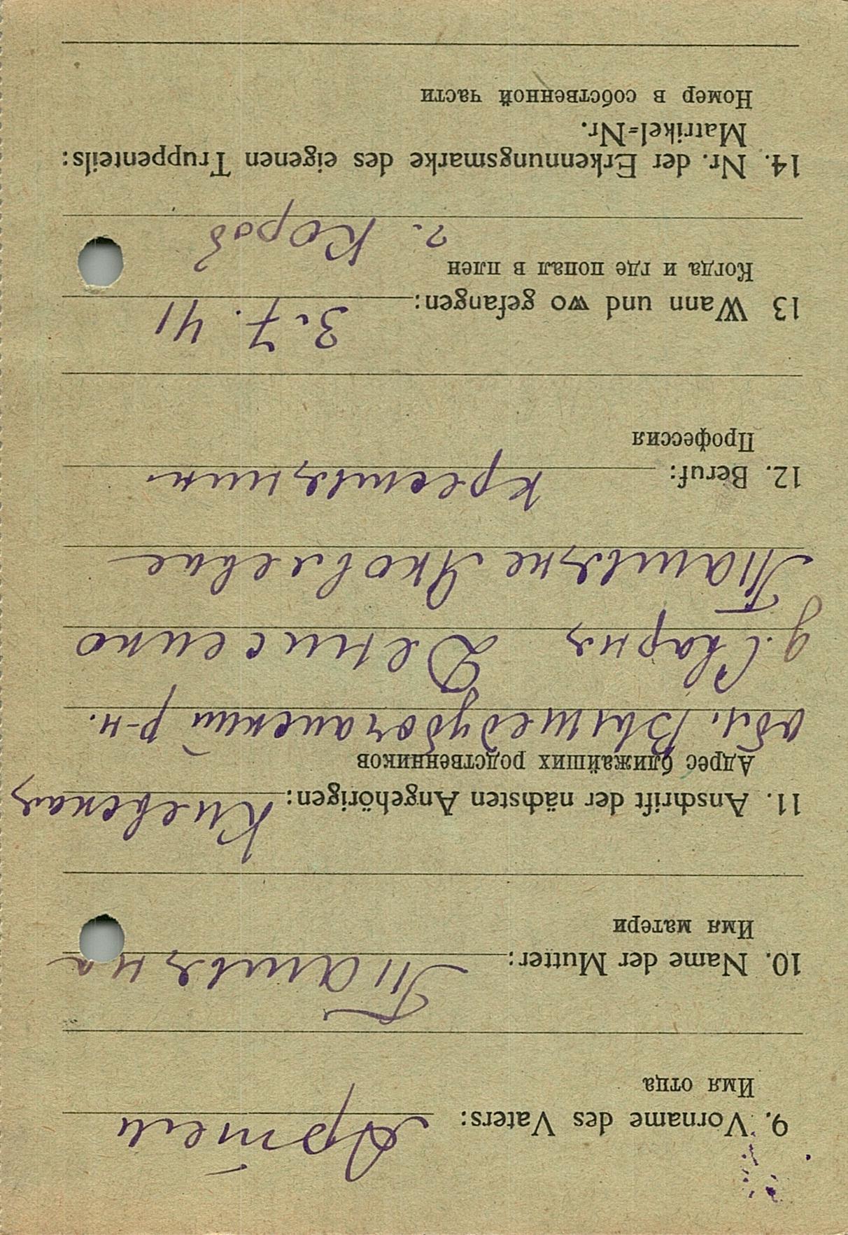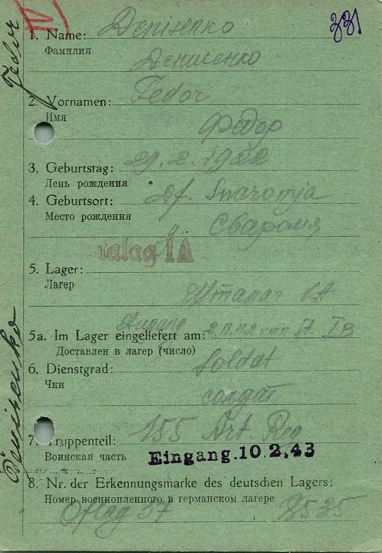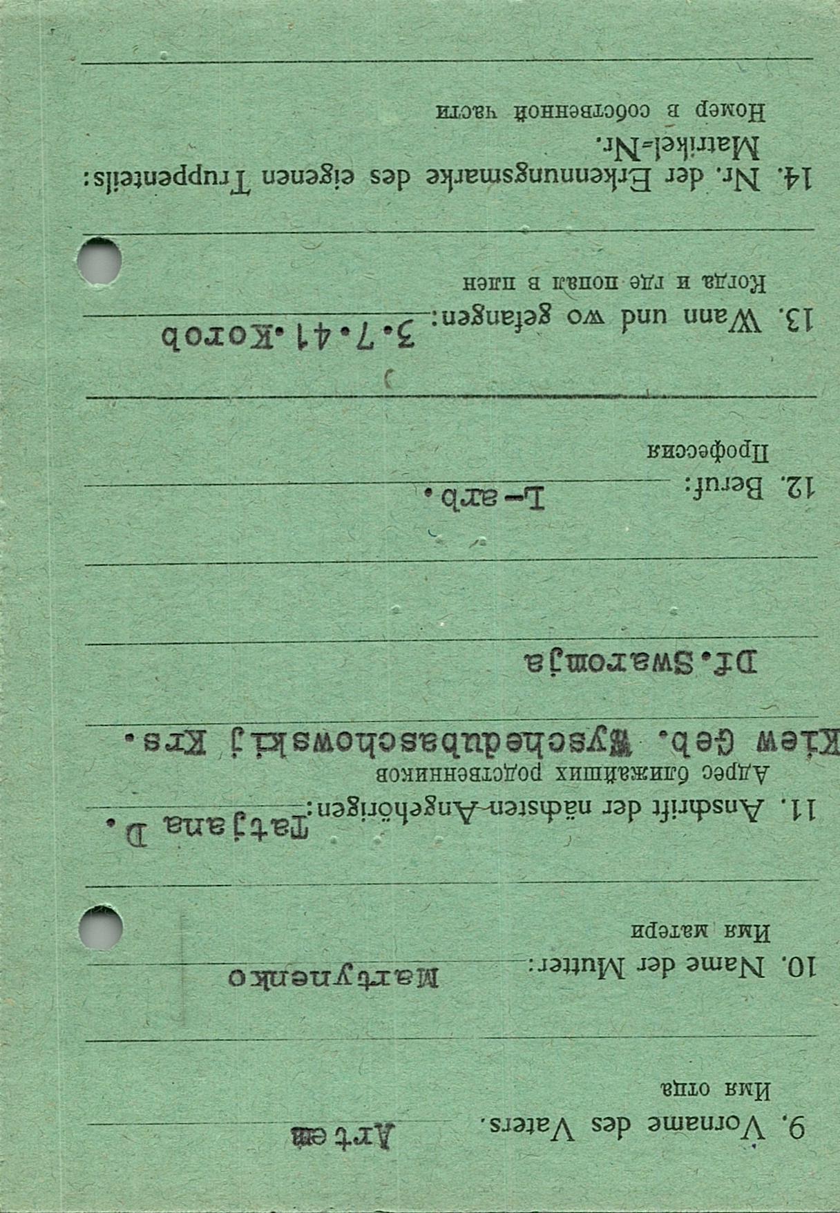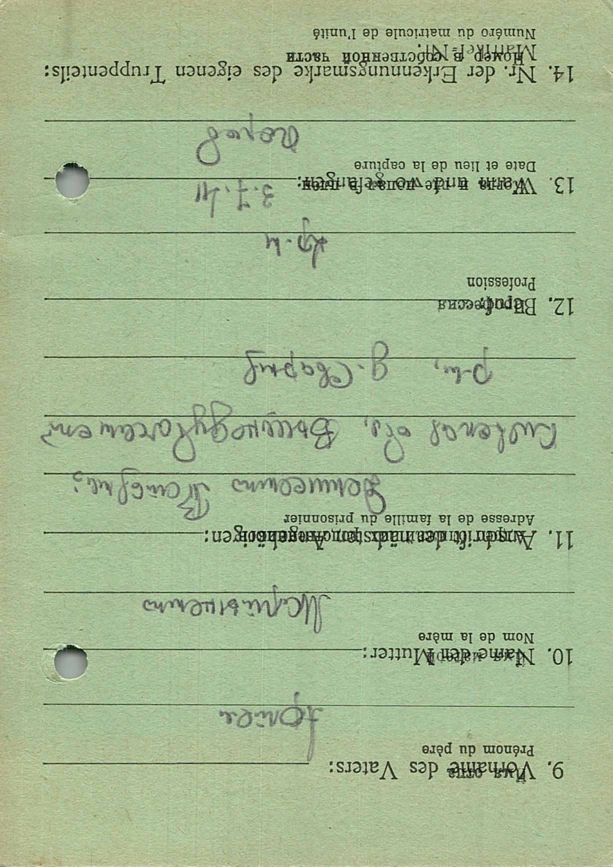 Военнопленные, трофейные карточки. Киевская обл.