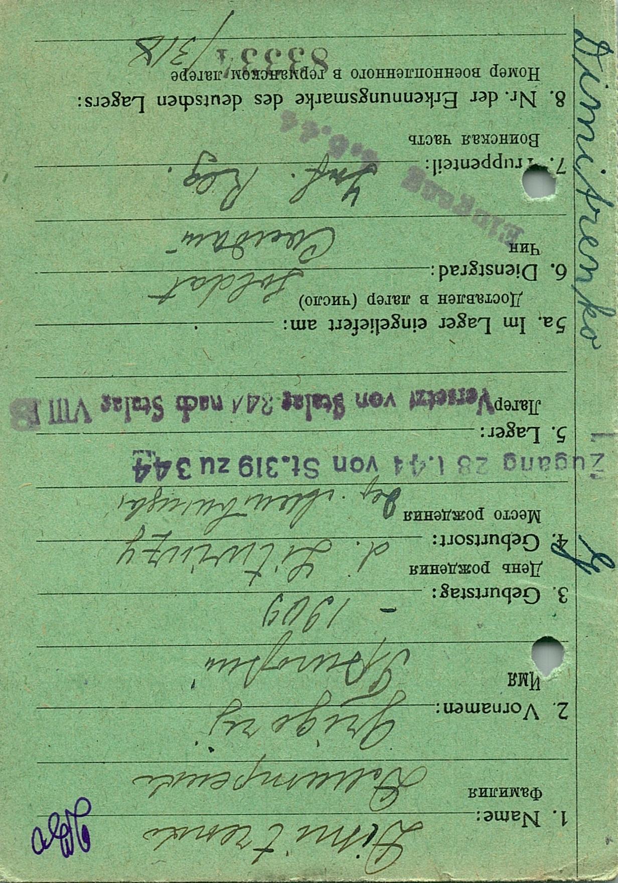 Военнопленные, трофейные карточки. Киевская обл.