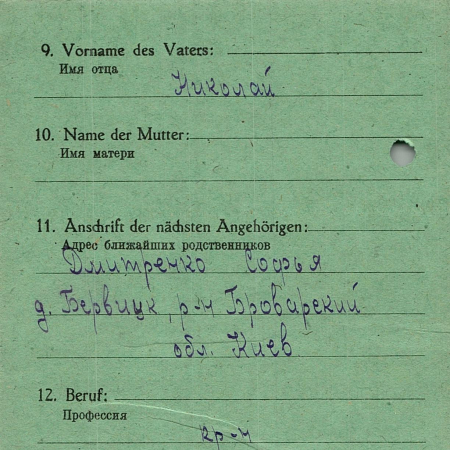 Военнопленные, трофейные карточки. Киевская обл.