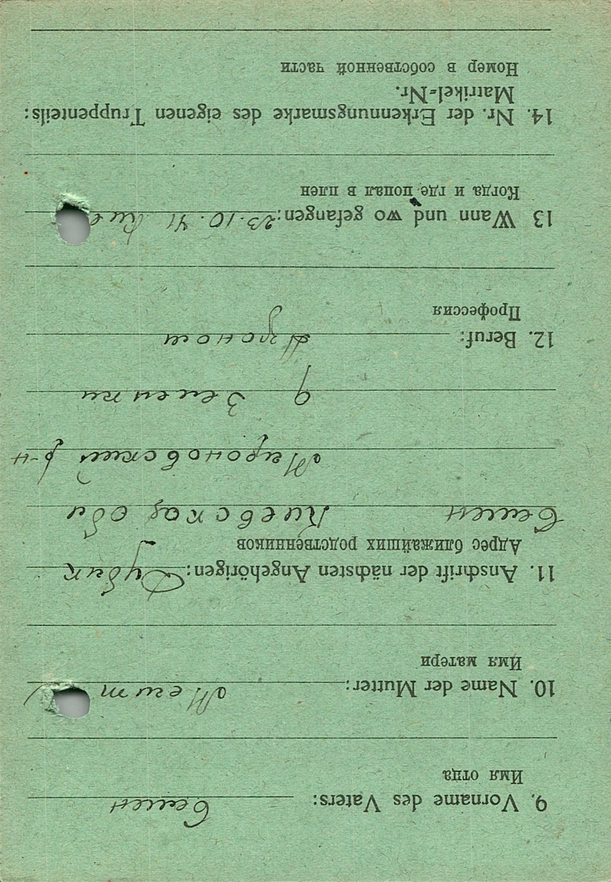 Военнопленные, трофейные карточки. Киевская обл.
