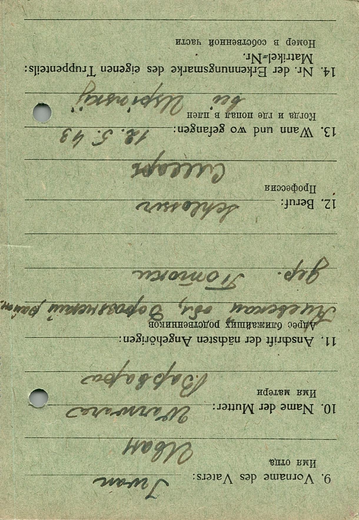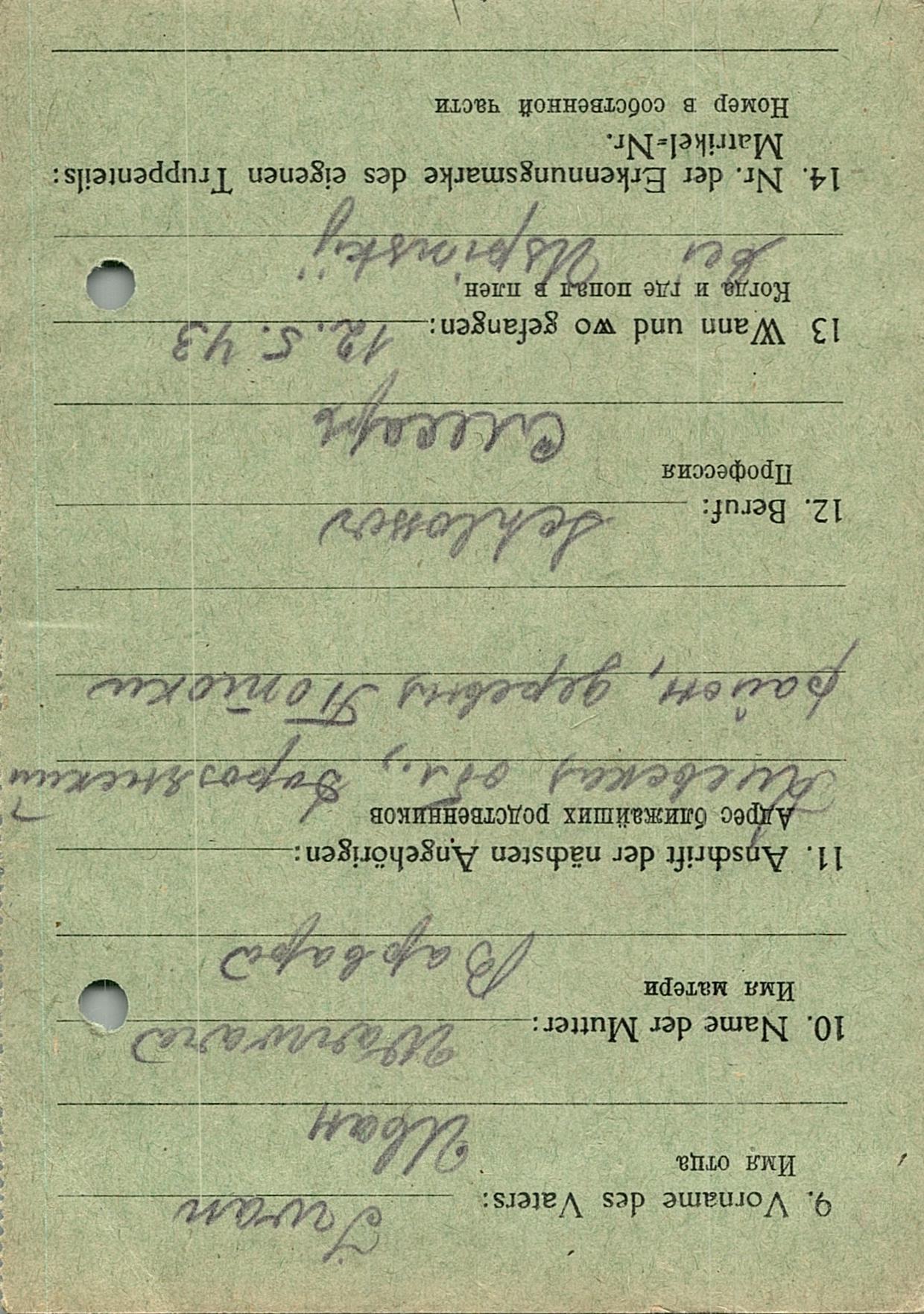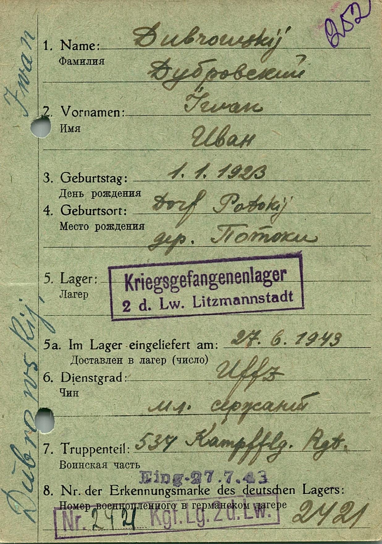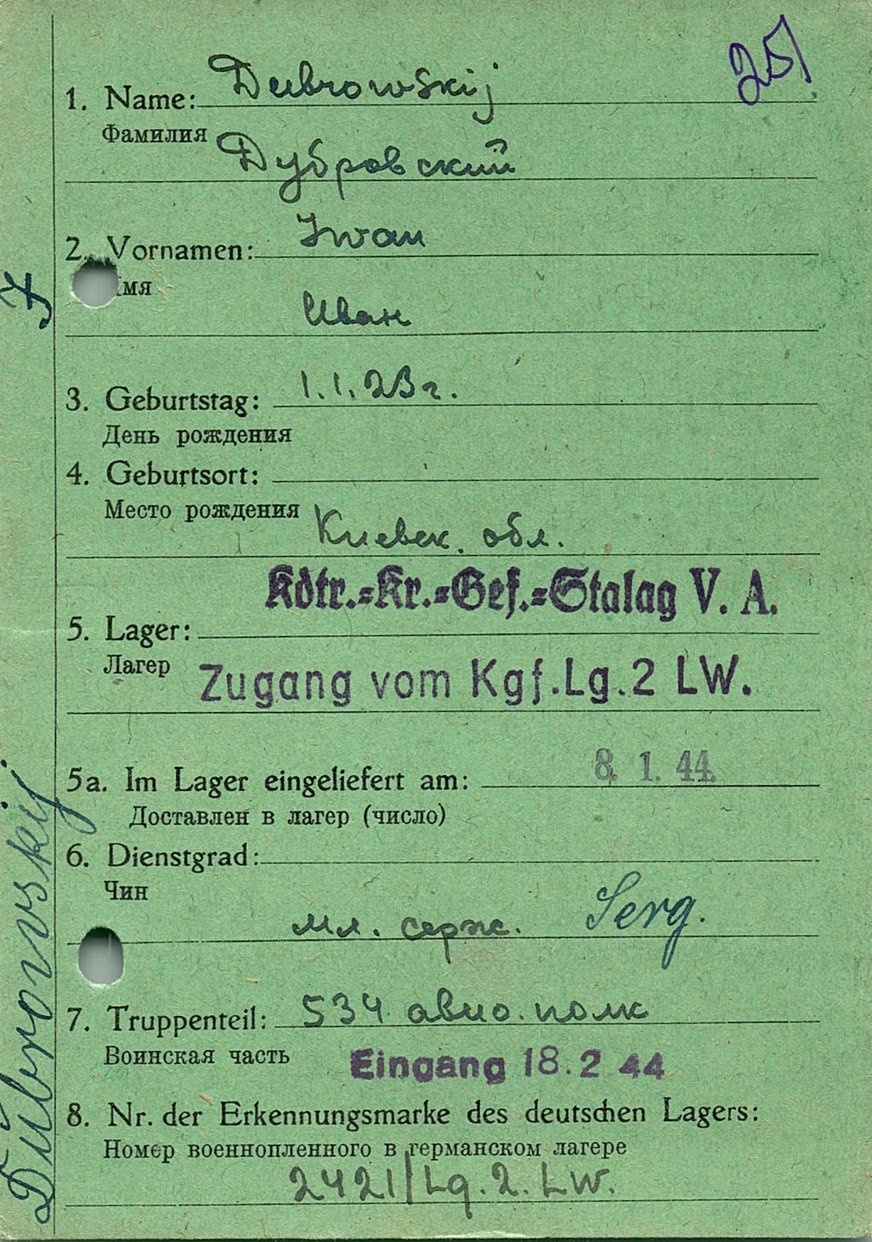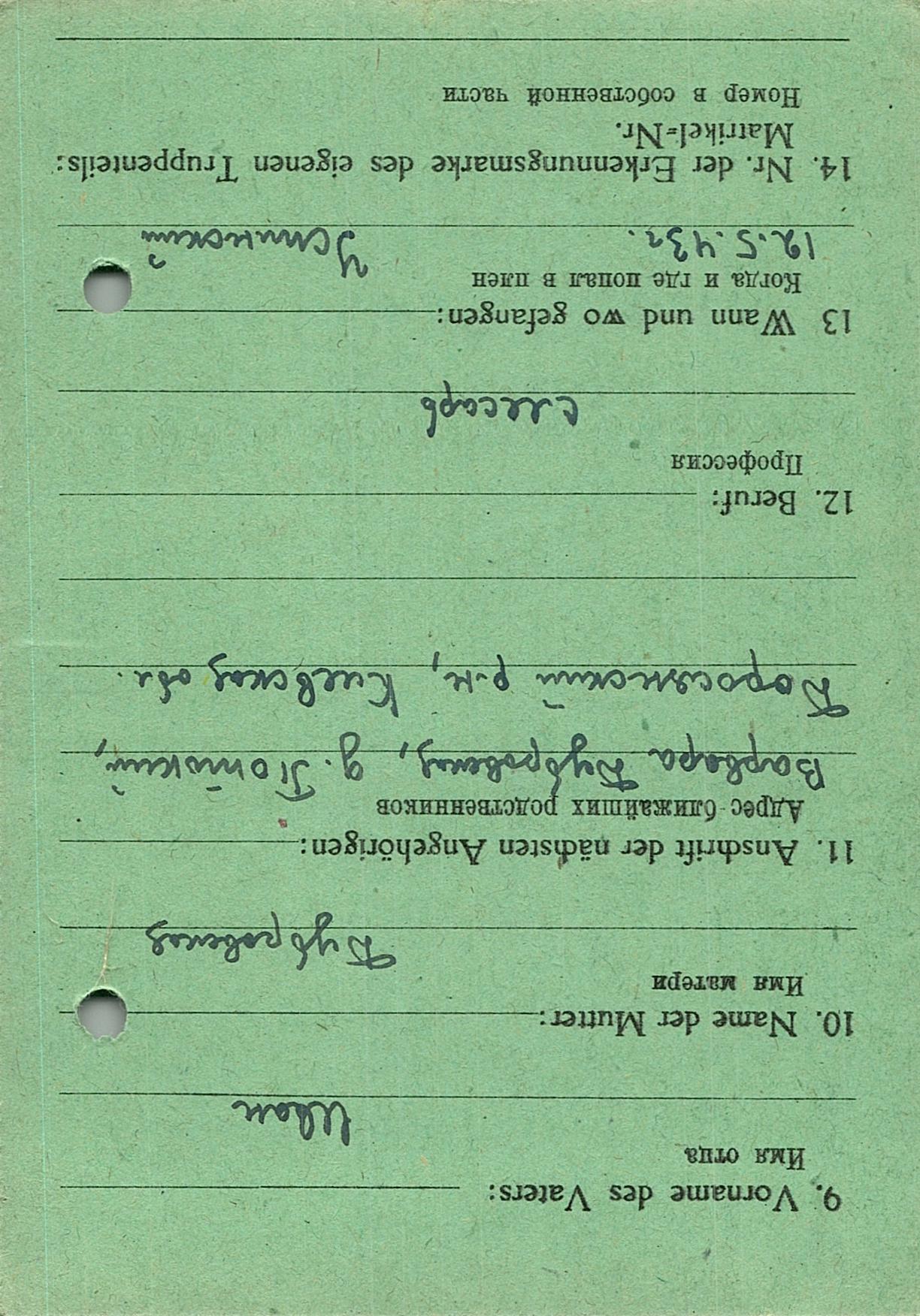 Военнопленные, трофейные карточки. Киевская обл.