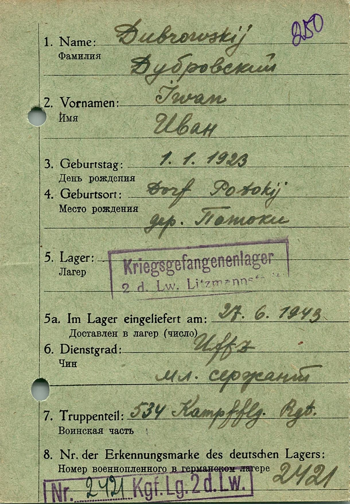 Военнопленные, трофейные карточки. Киевская обл.