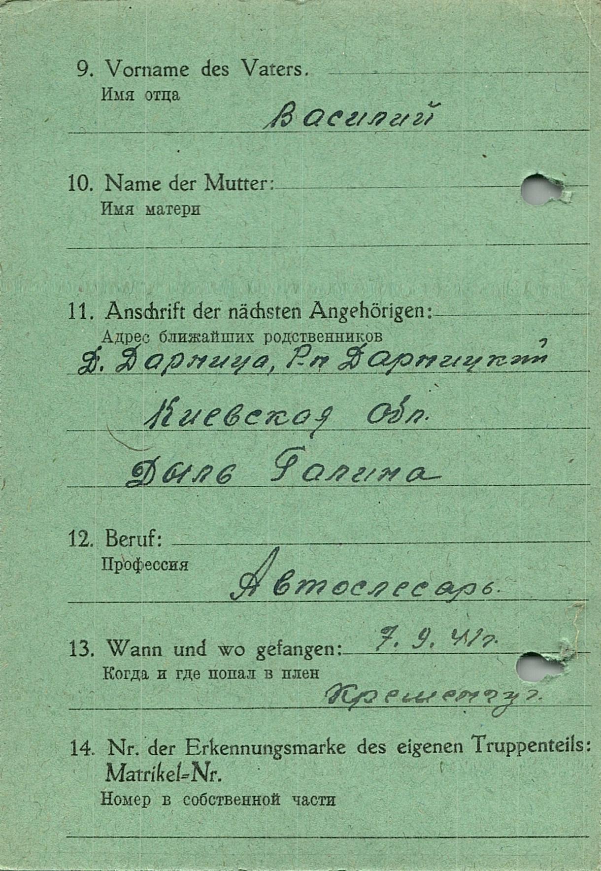 Военнопленные, трофейные карточки. Киевская обл.