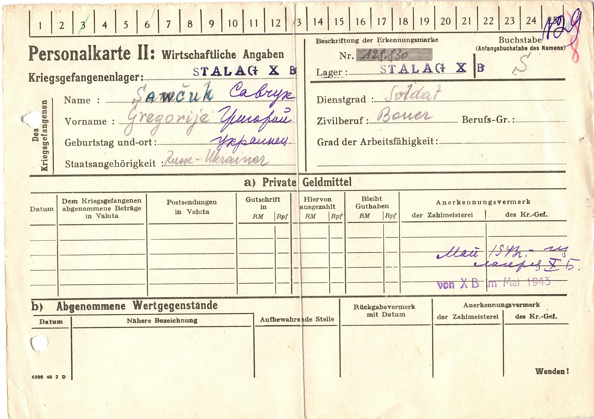 Военнопленные, трофейные карточки. Киевская обл.