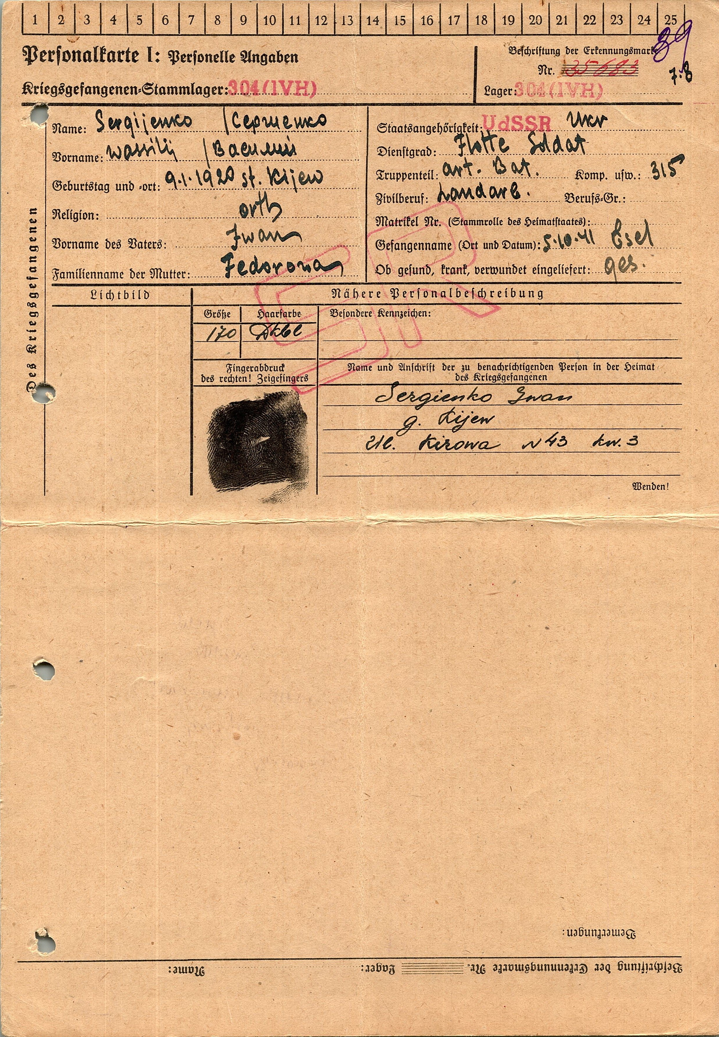 Военнопленные, трофейные карточки. Киевская обл.