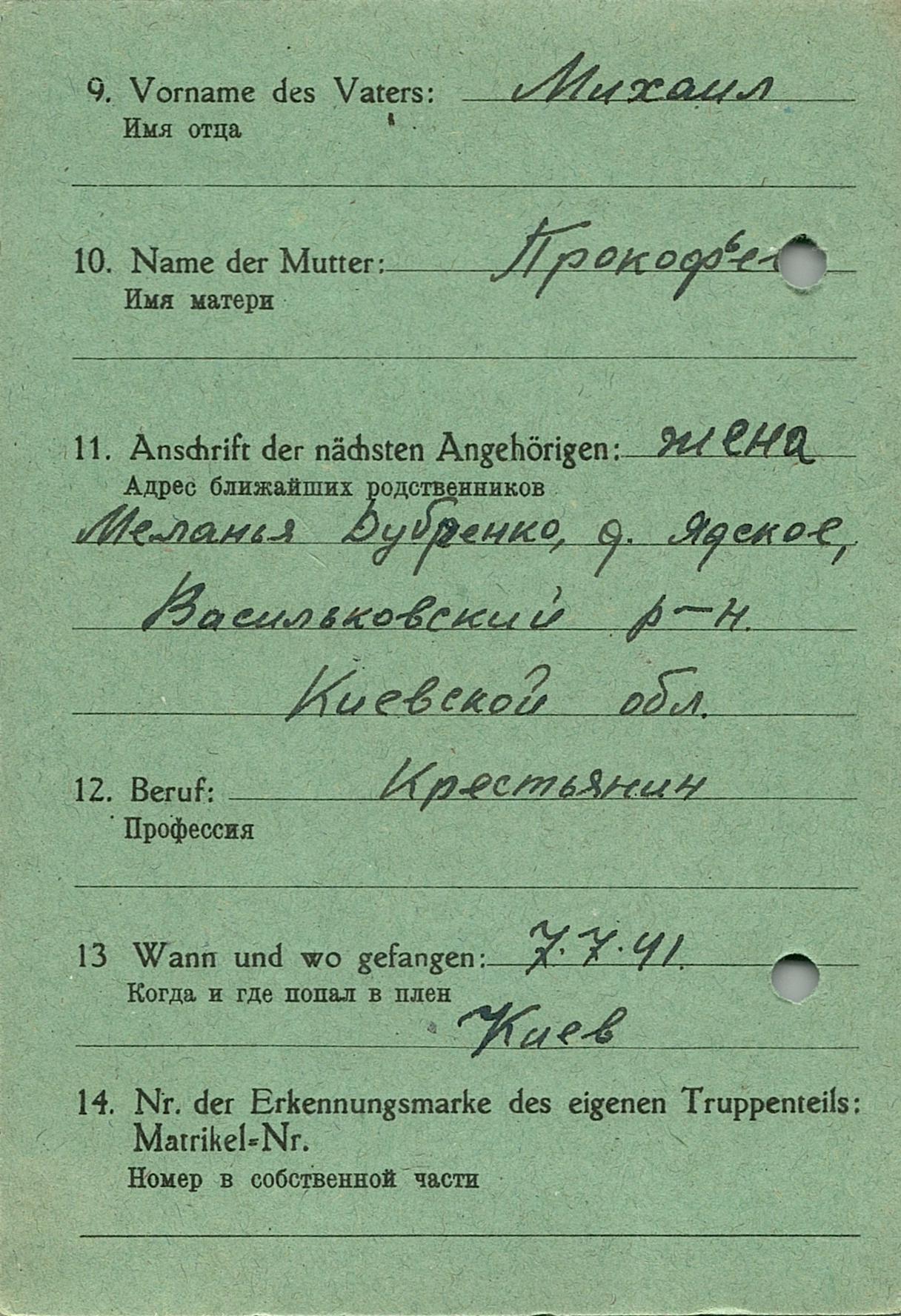 Военнопленные, трофейные карточки. Киевская обл.