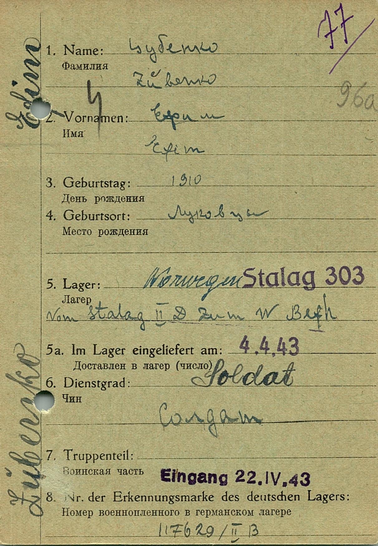Военнопленные, трофейные карточки. Киевская обл.