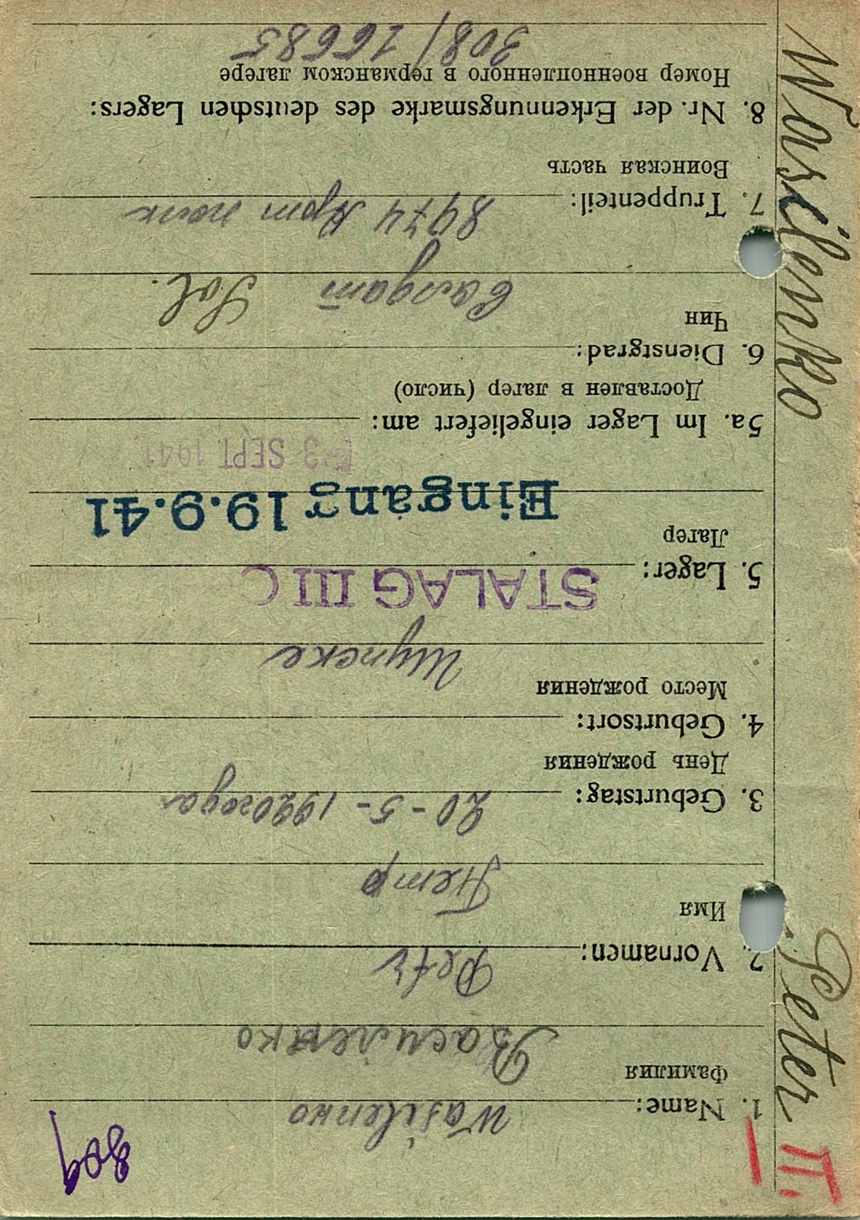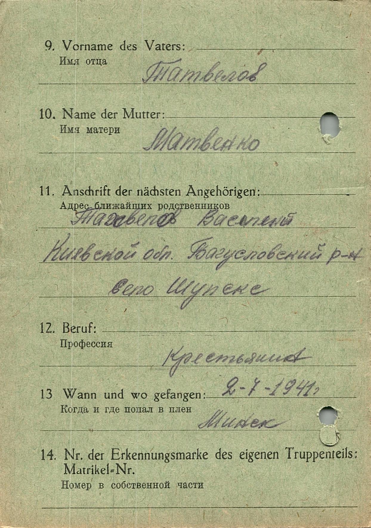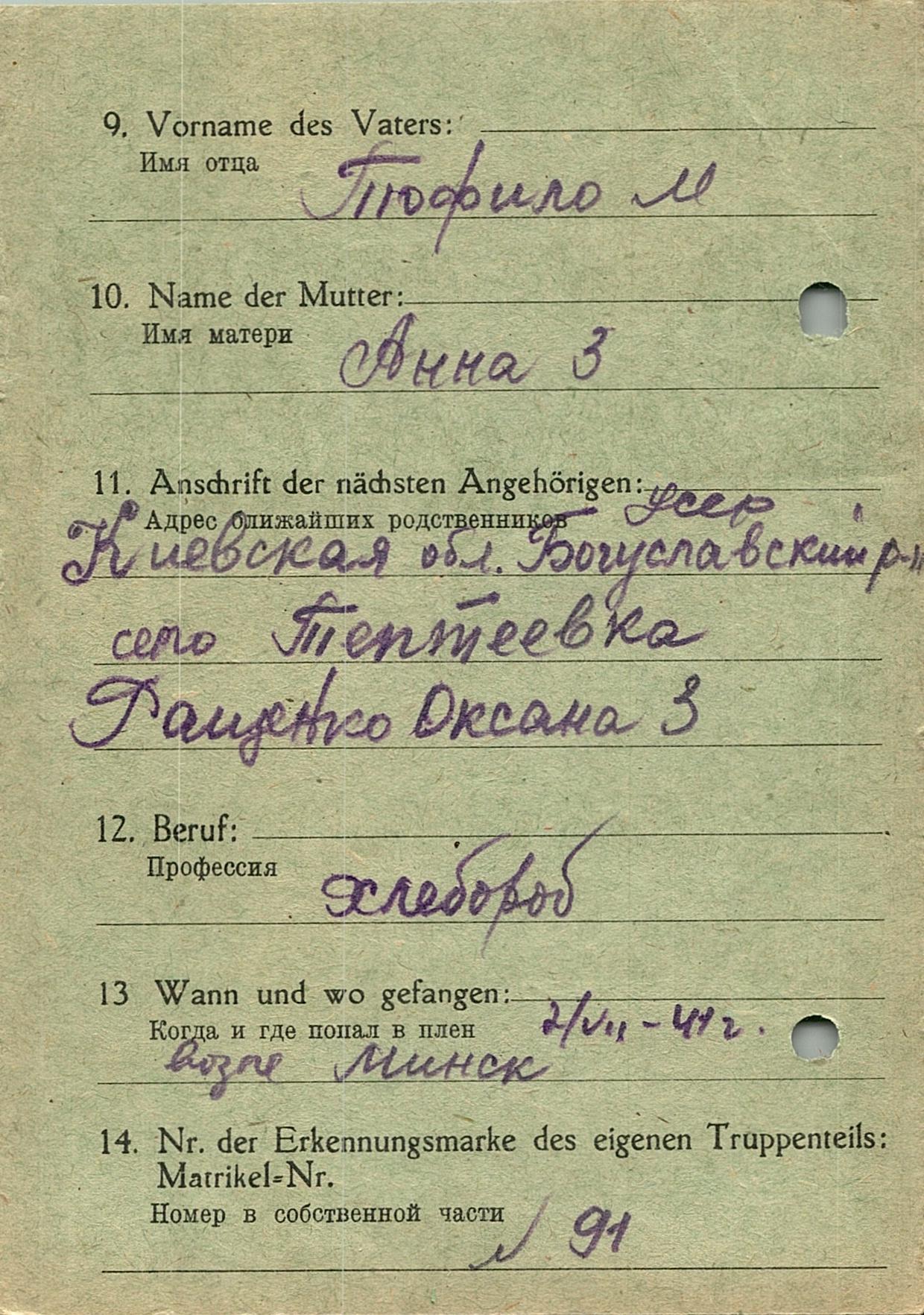 Военнопленные, трофейные карточки. Киевская обл.
