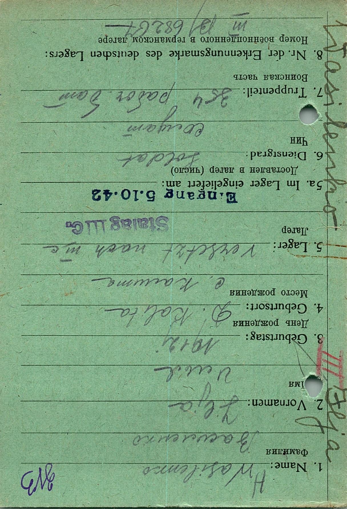 Военнопленные, трофейные карточки. Киевская обл.