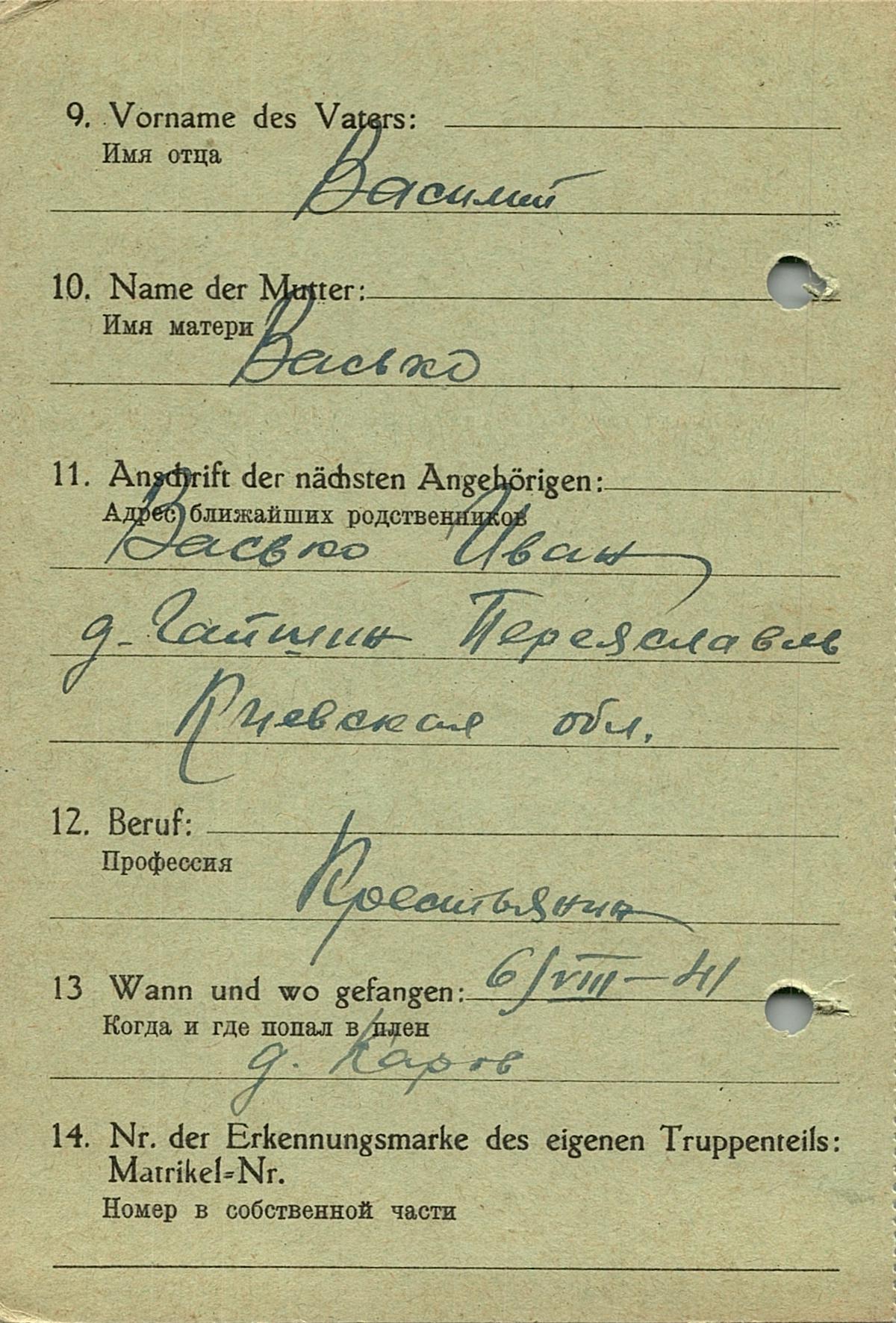 Военнопленные, трофейные карточки. Киевская обл.
