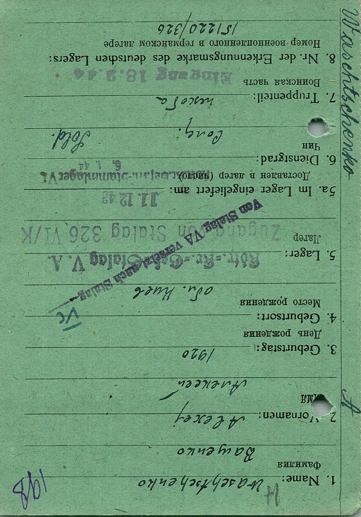 Военнопленные, трофейные карточки. Киевская обл.