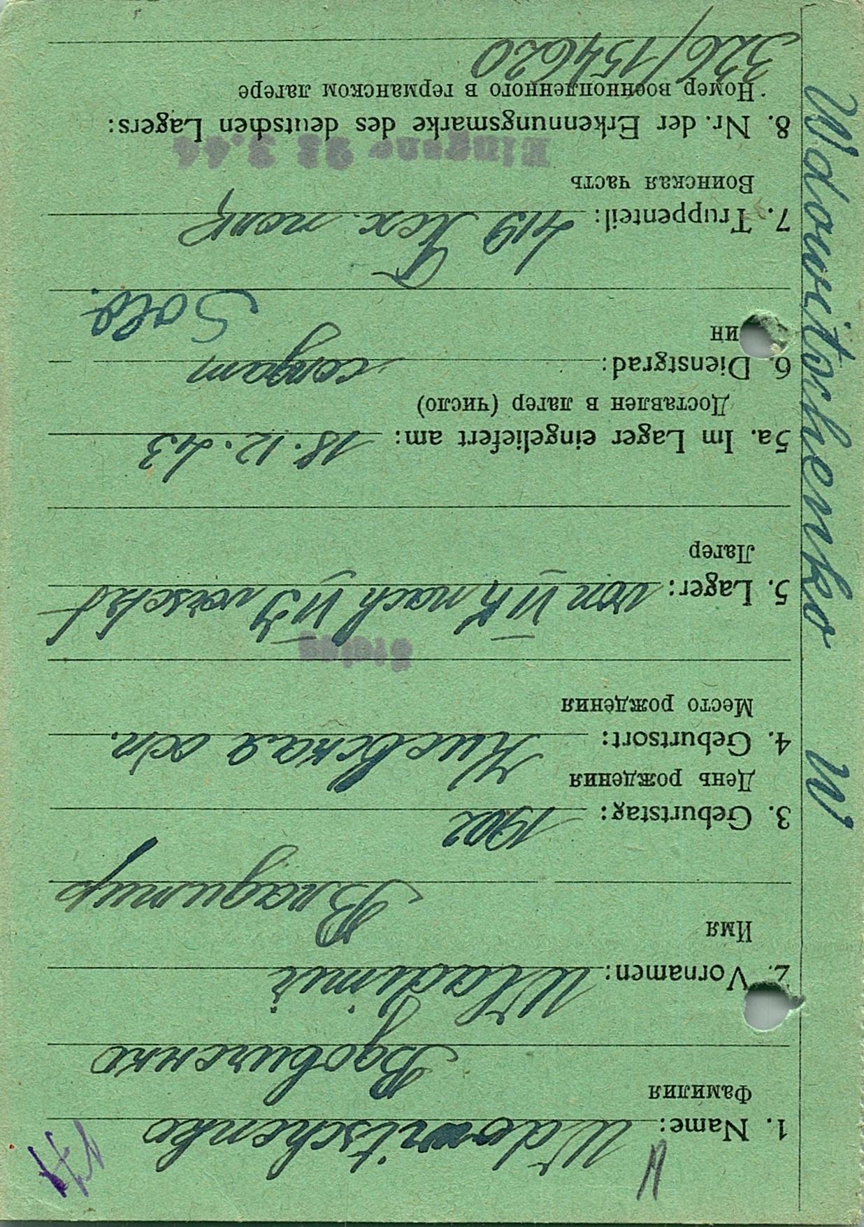 Военнопленные, трофейные карточки. Киевская обл.