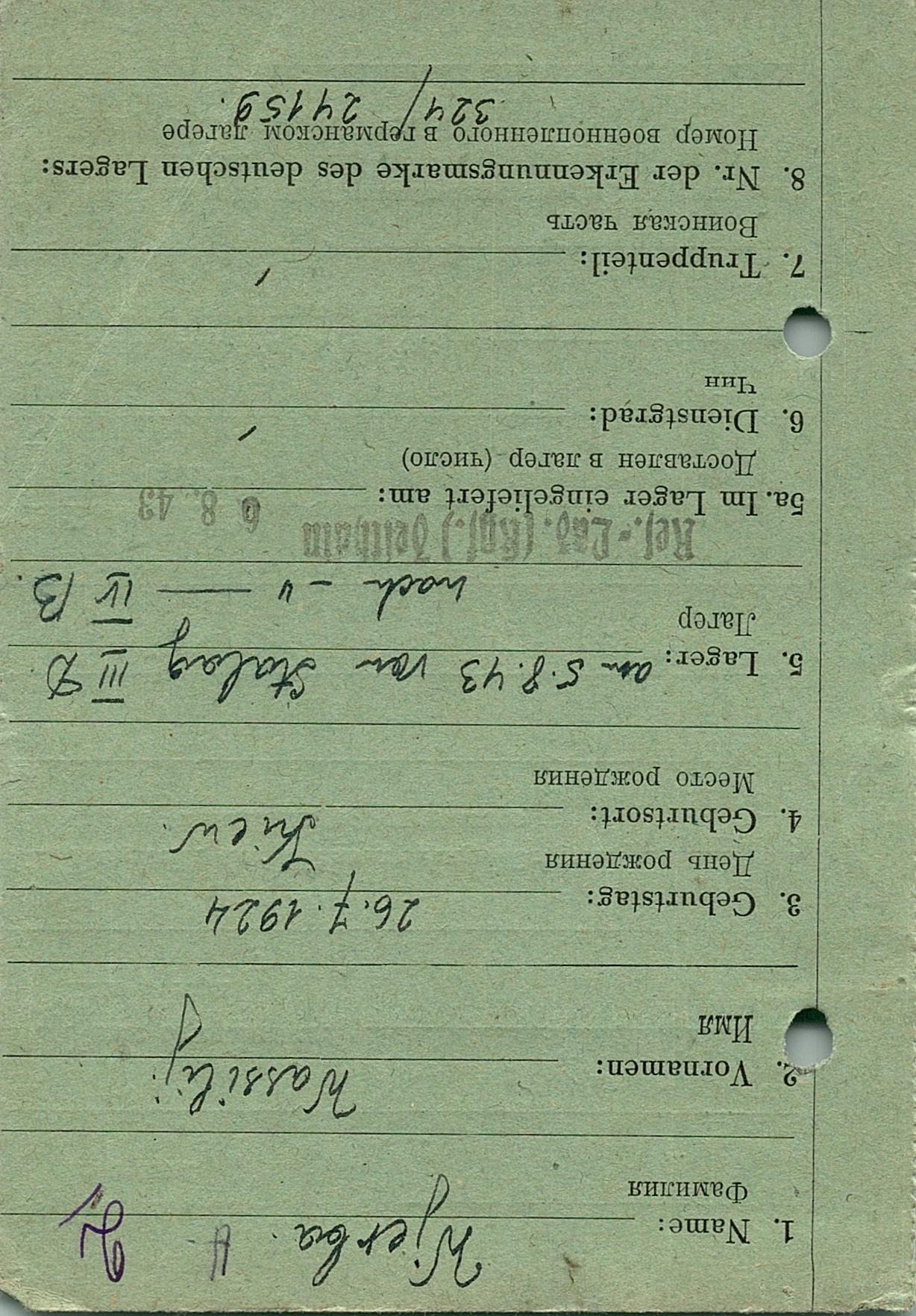 Военнопленные, трофейные карточки. Киевская обл.