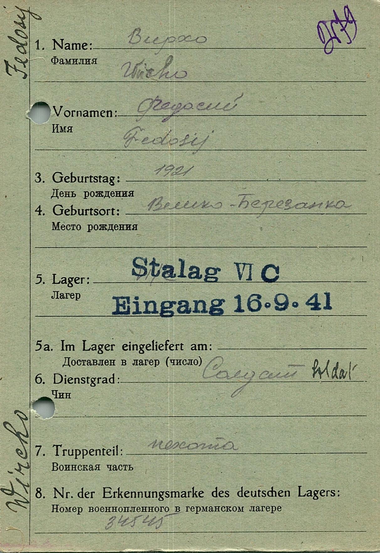 Военнопленные, трофейные карточки. Киевская обл.