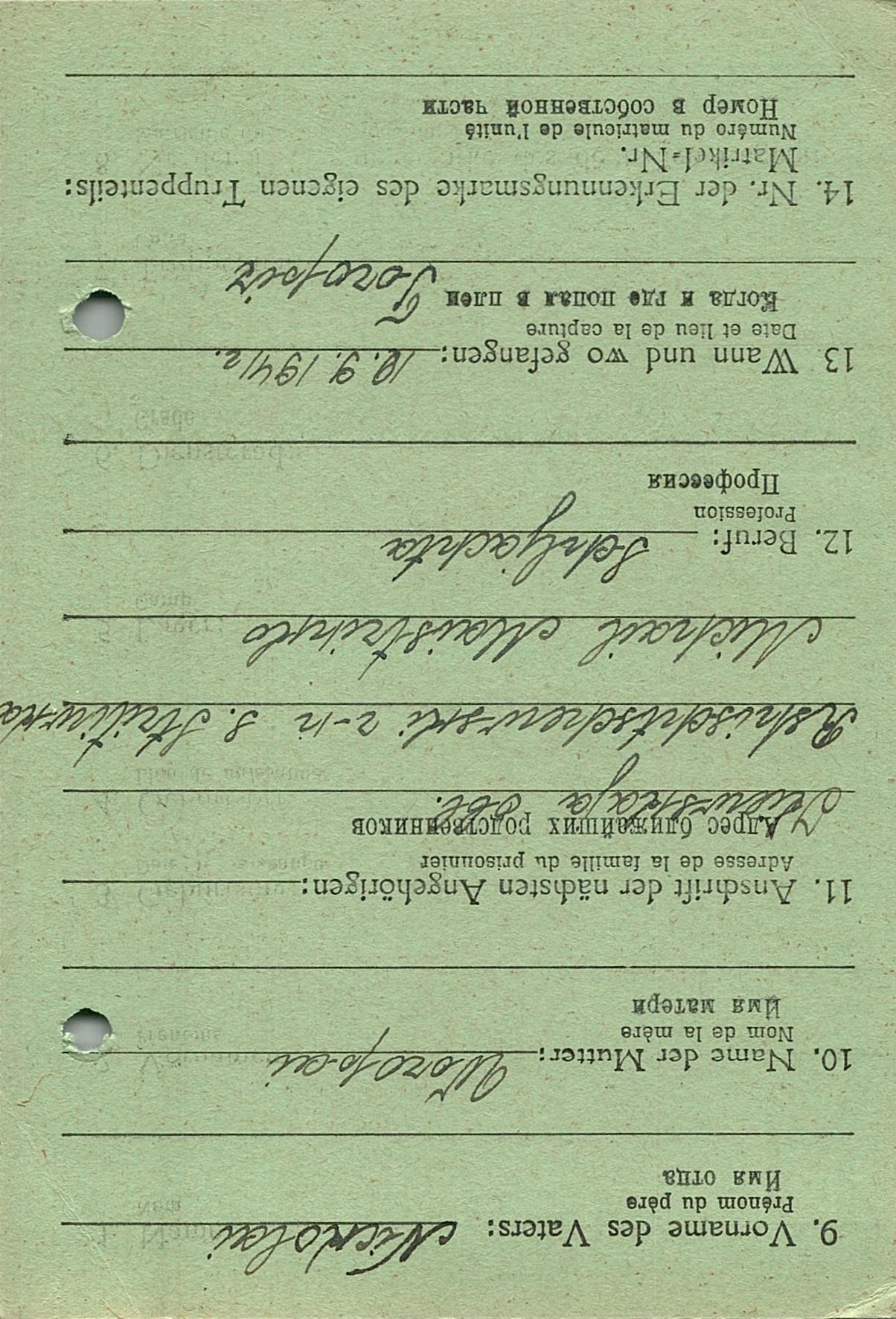Военнопленные, трофейные карточки. Киевская обл.
