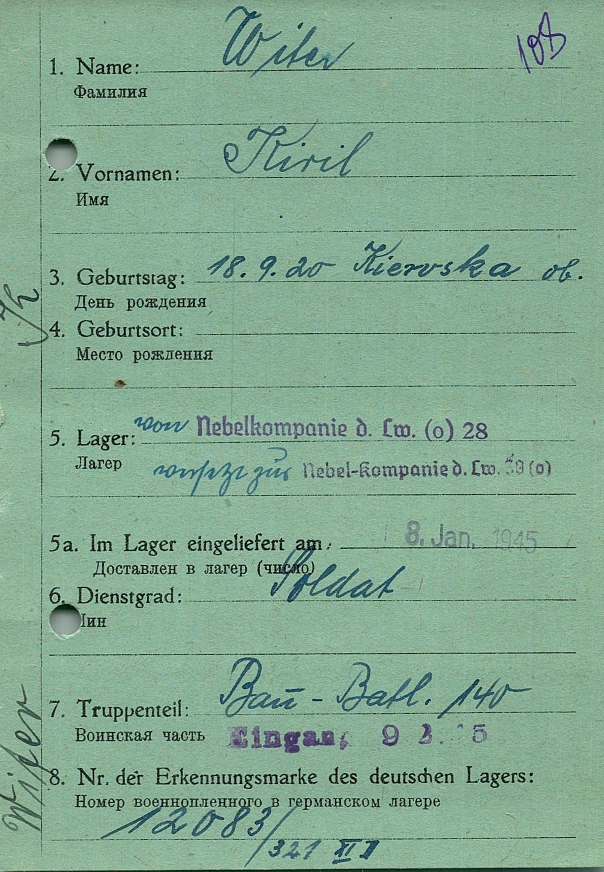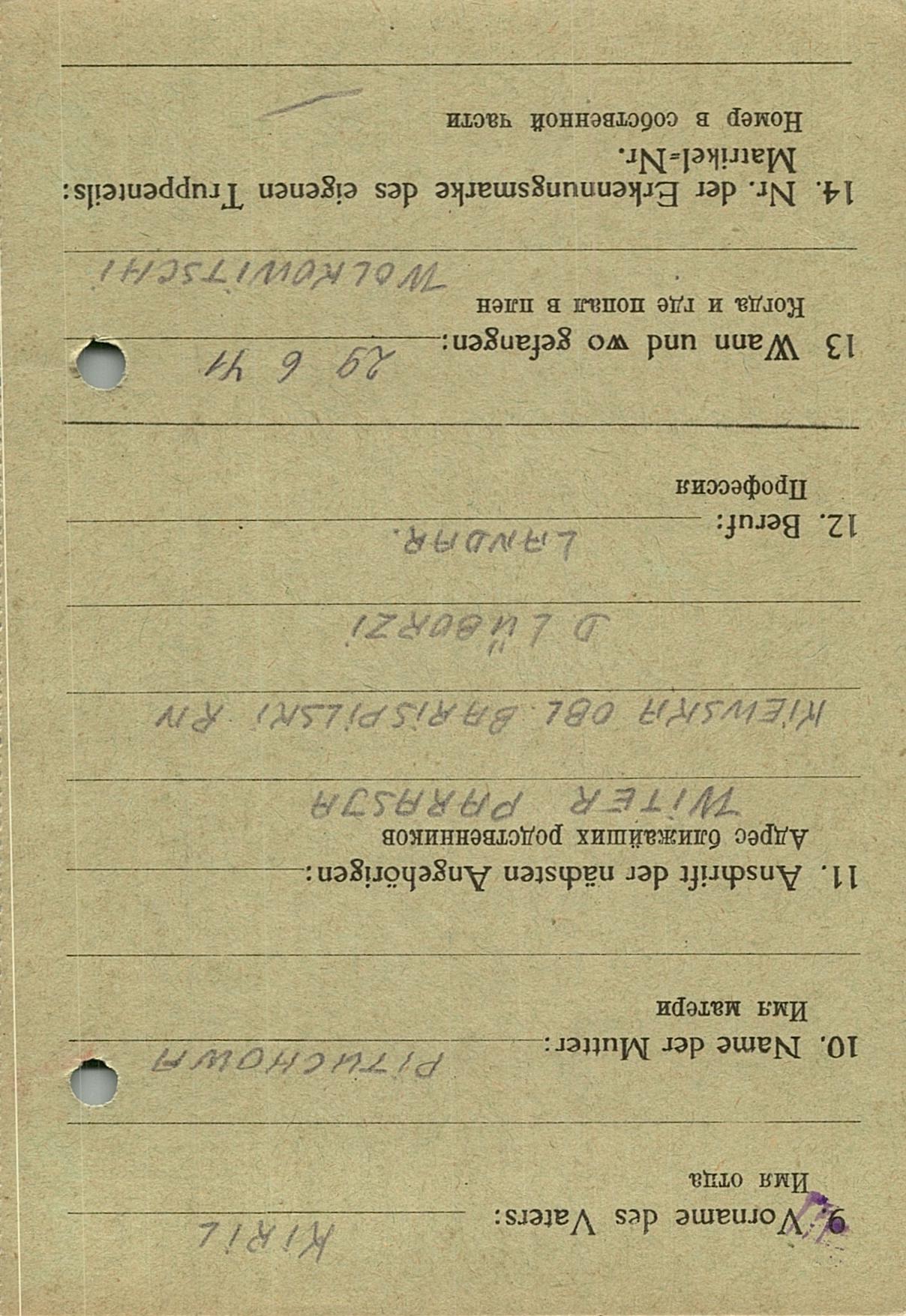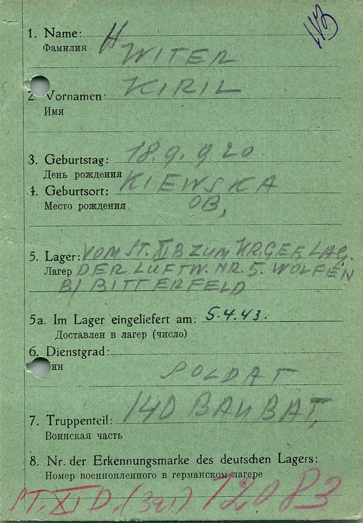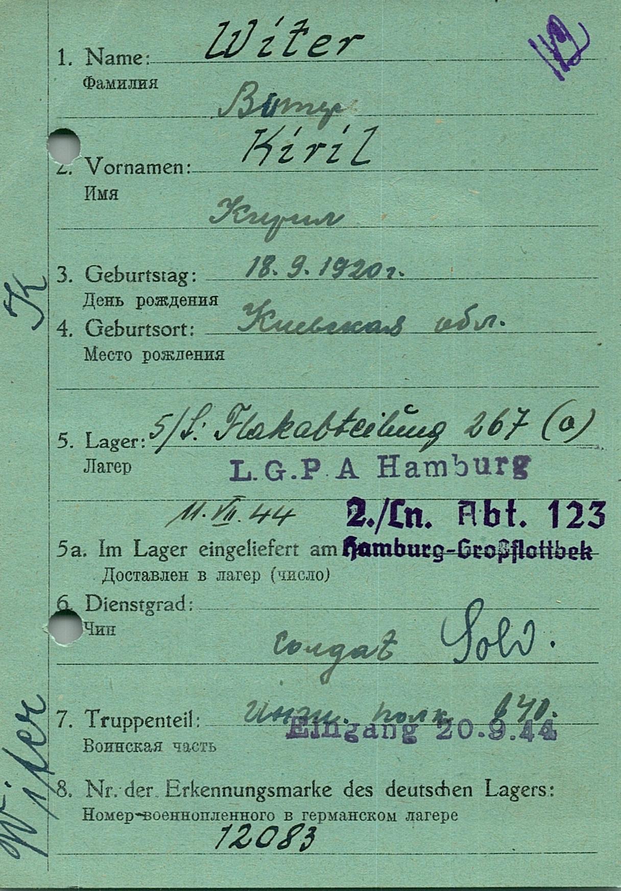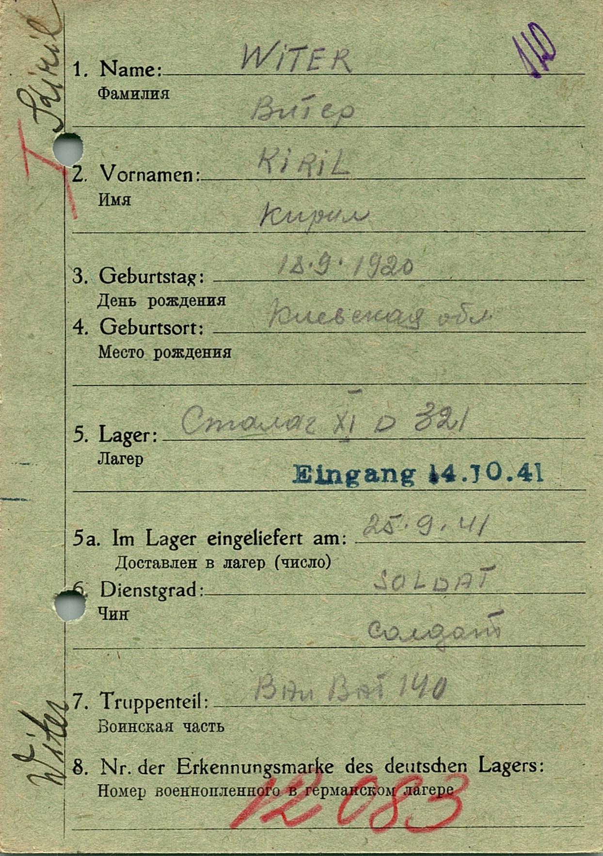 Военнопленные, трофейные карточки. Киевская обл.