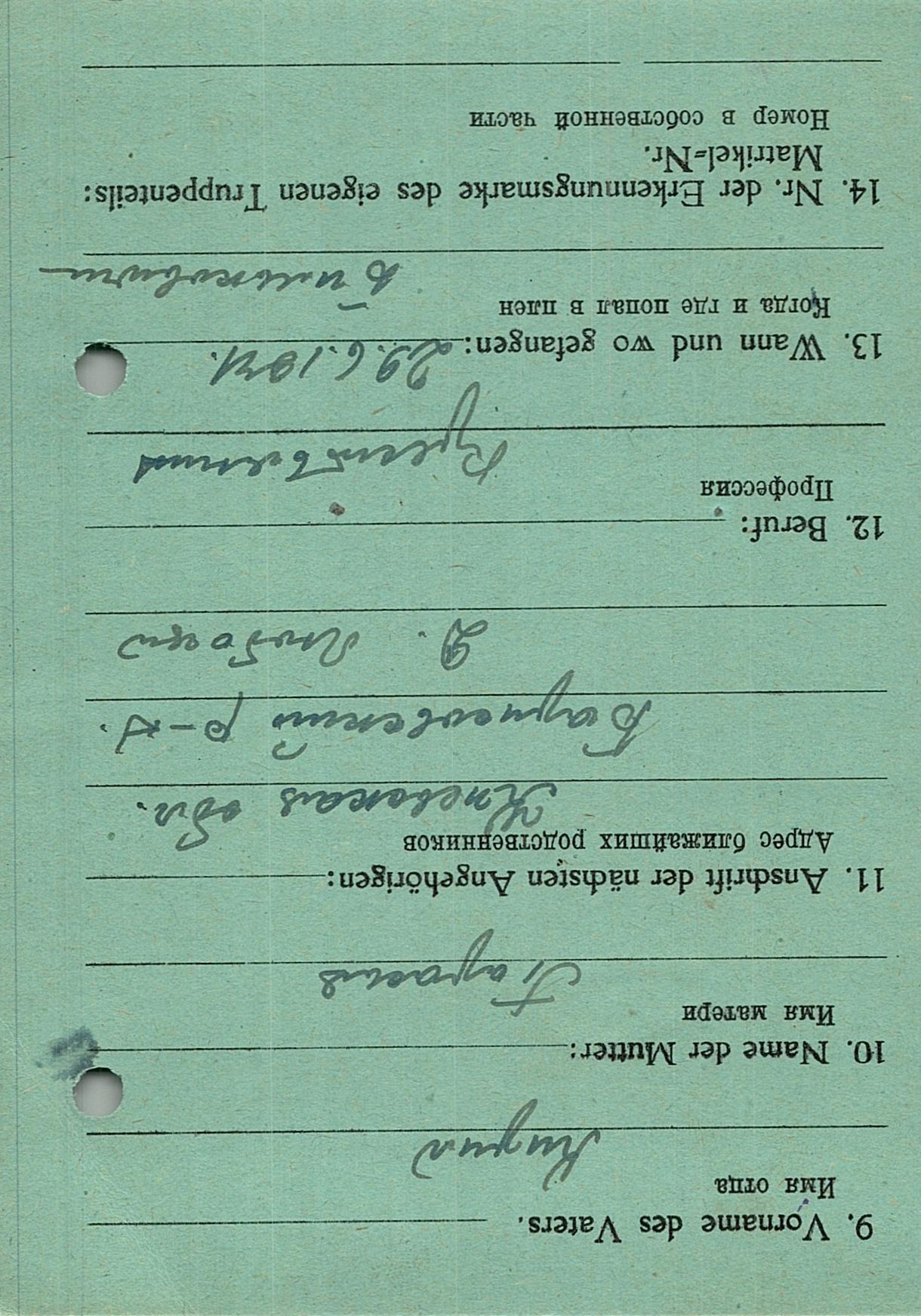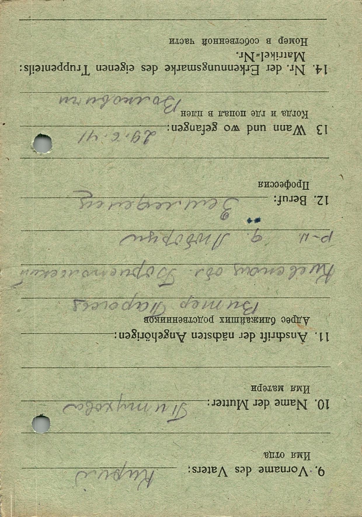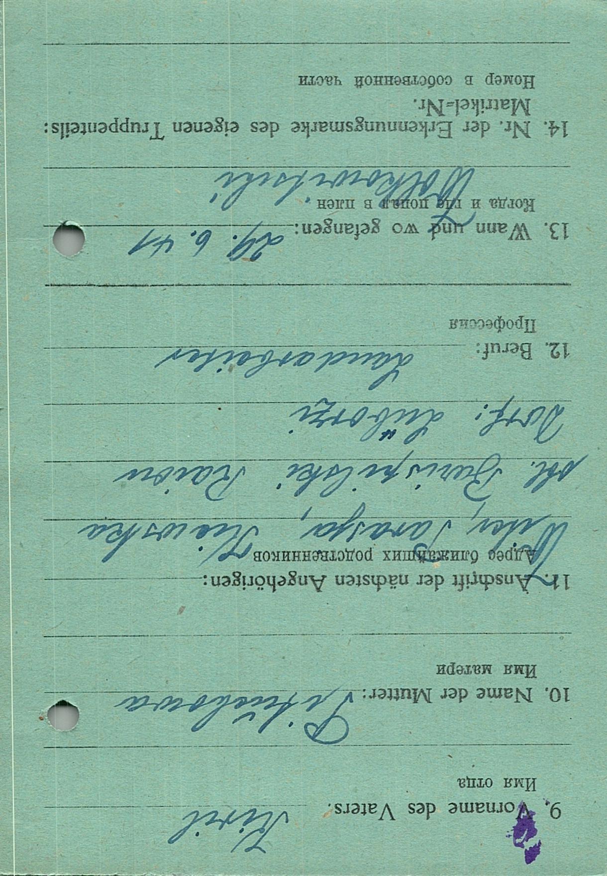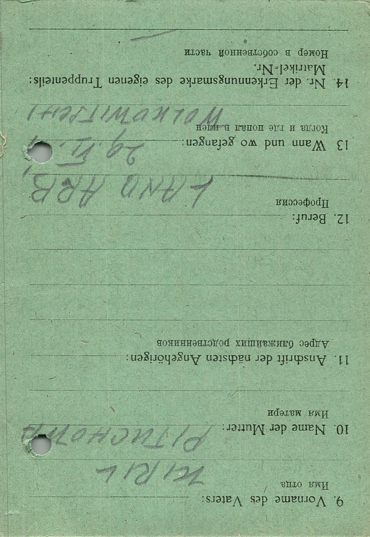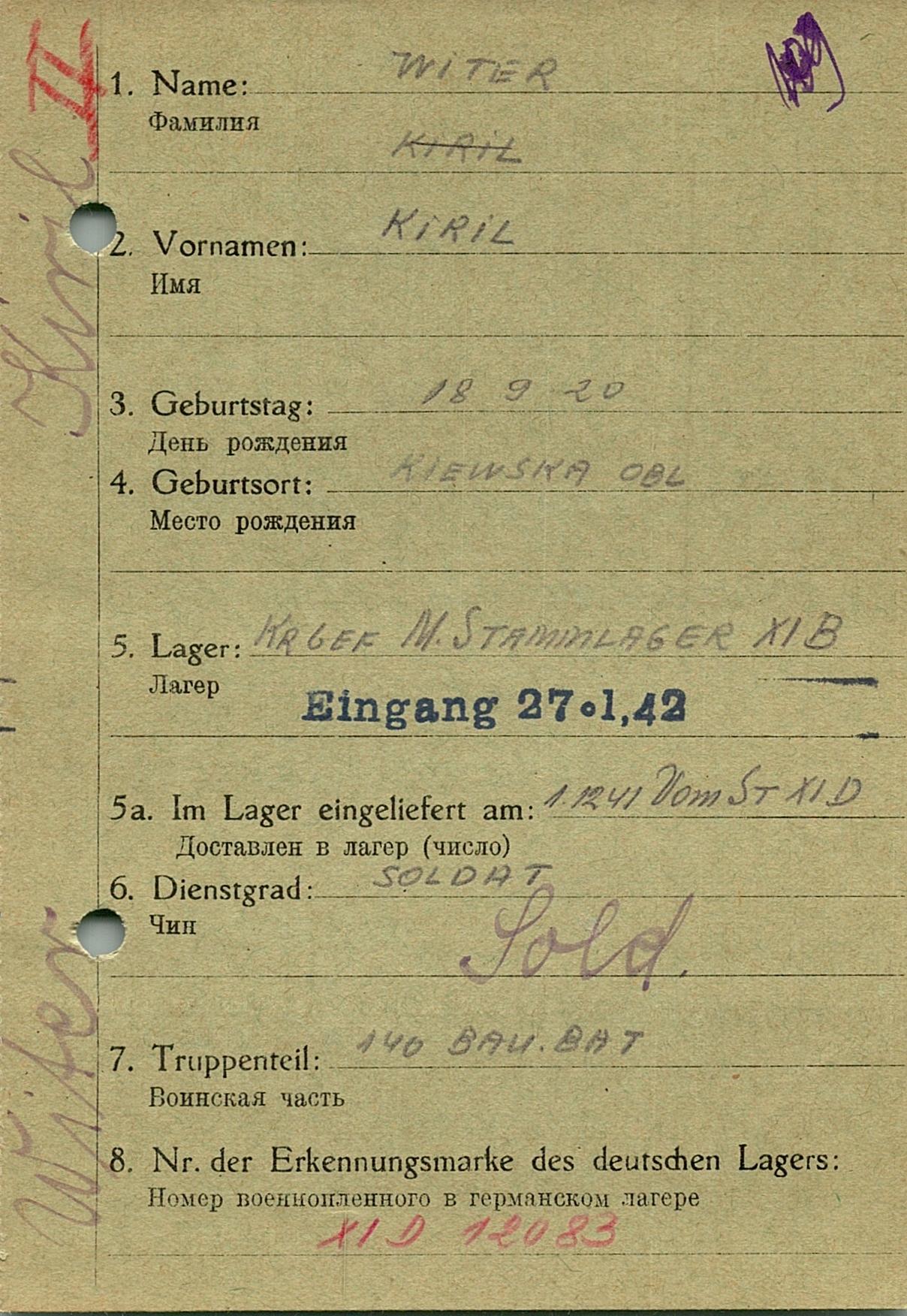 Военнопленные, трофейные карточки. Киевская обл.