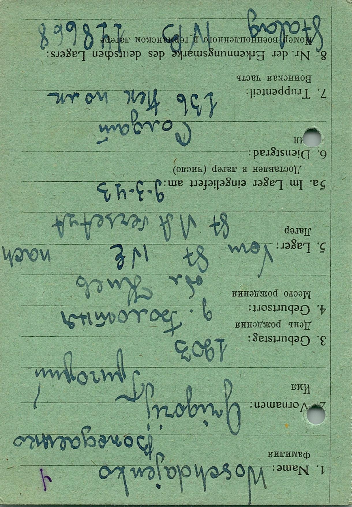 Военнопленные, трофейные карточки. Киевская обл.