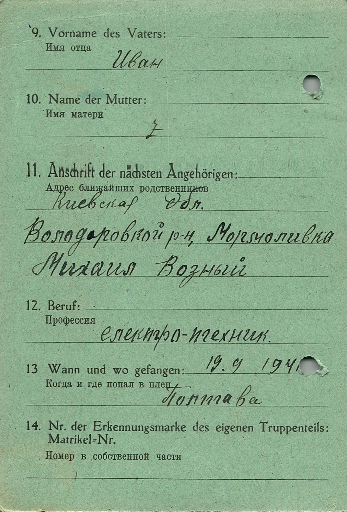 Военнопленные, трофейные карточки. Киевская обл.