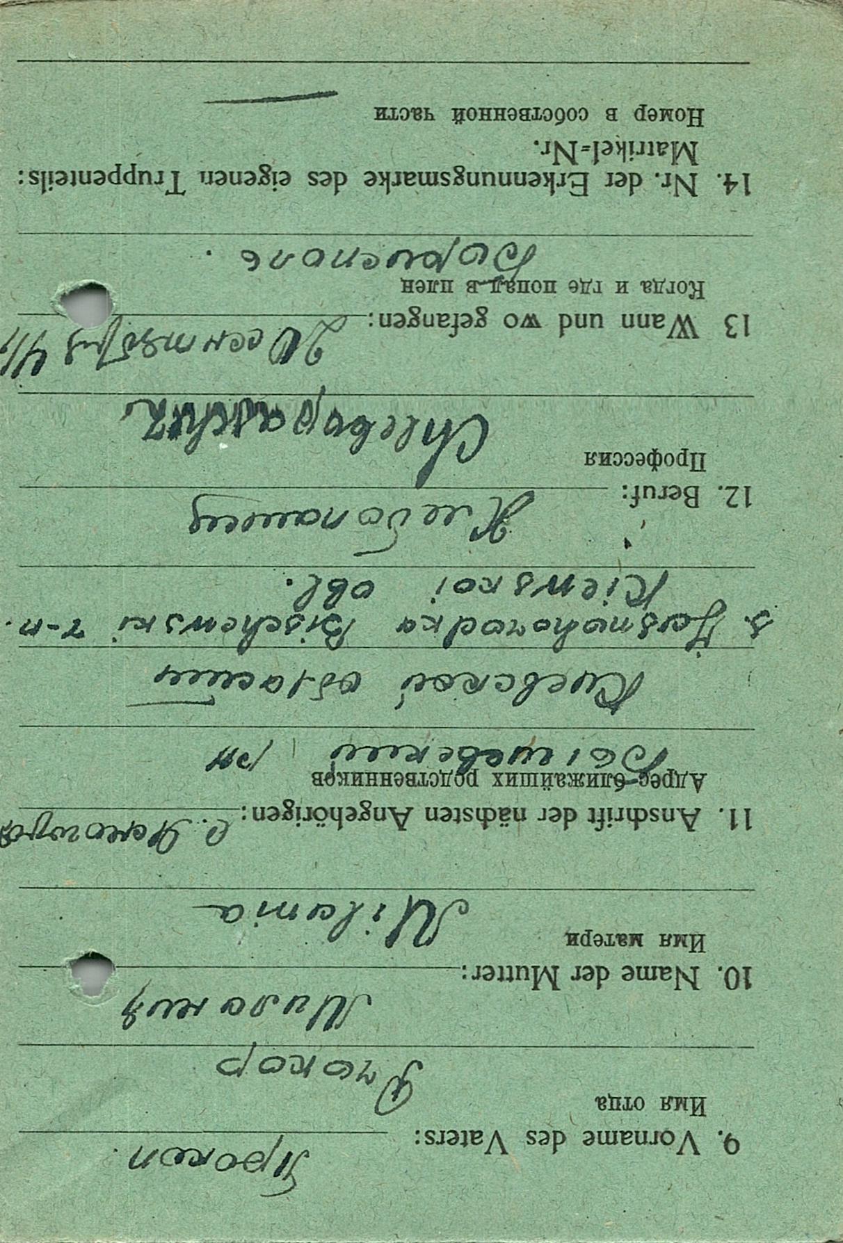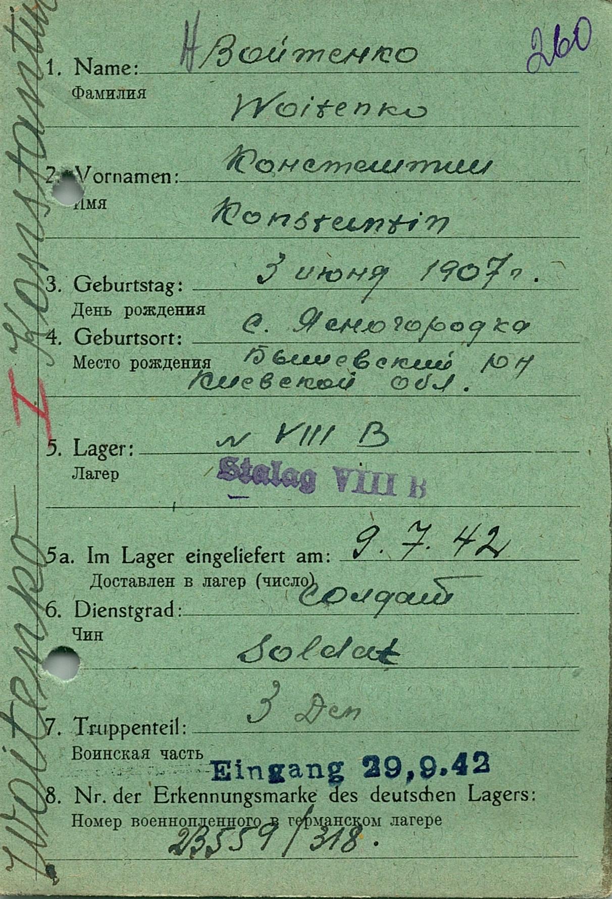 Военнопленные, трофейные карточки. Киевская обл.