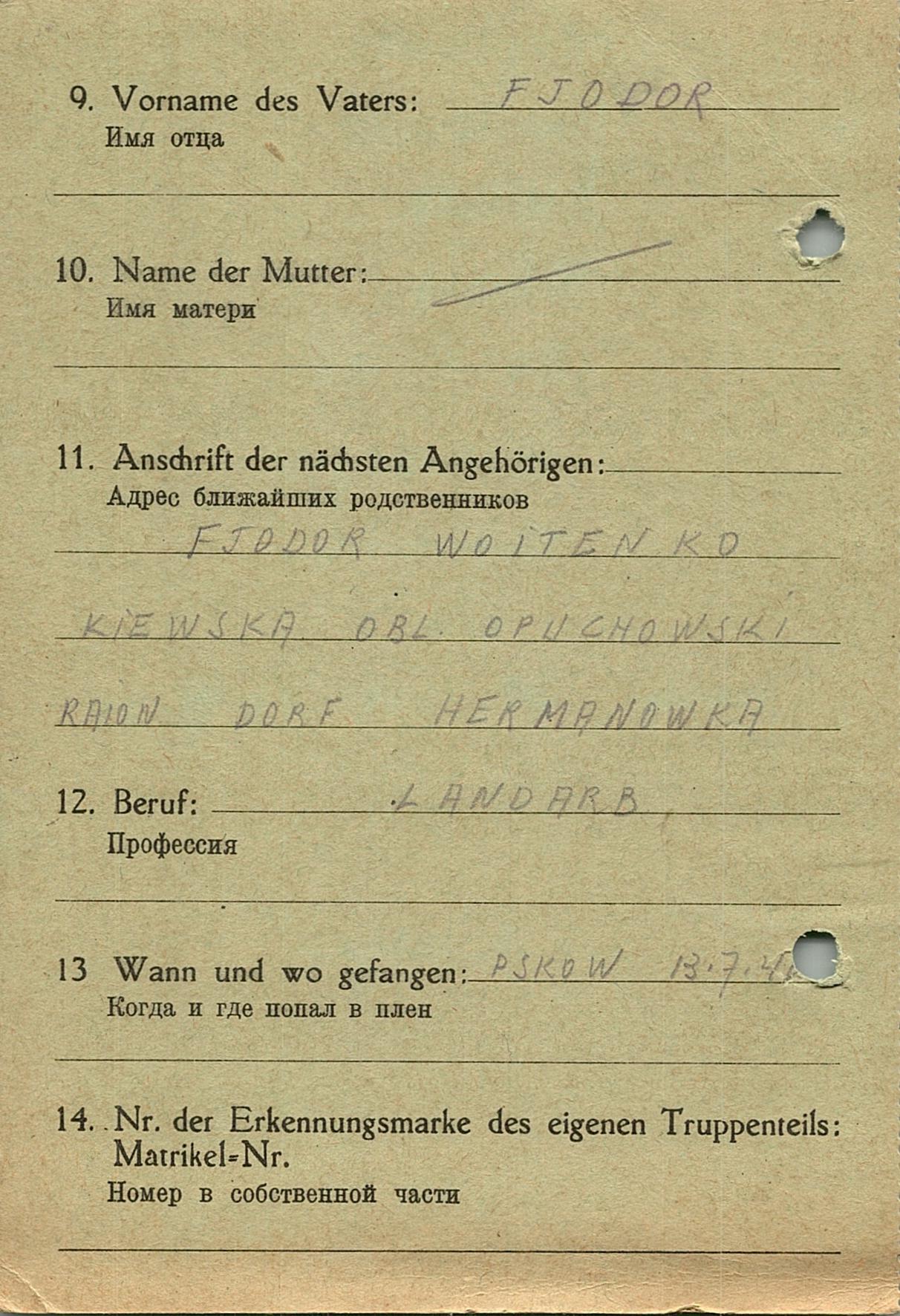 Военнопленные, трофейные карточки. Киевская обл.
