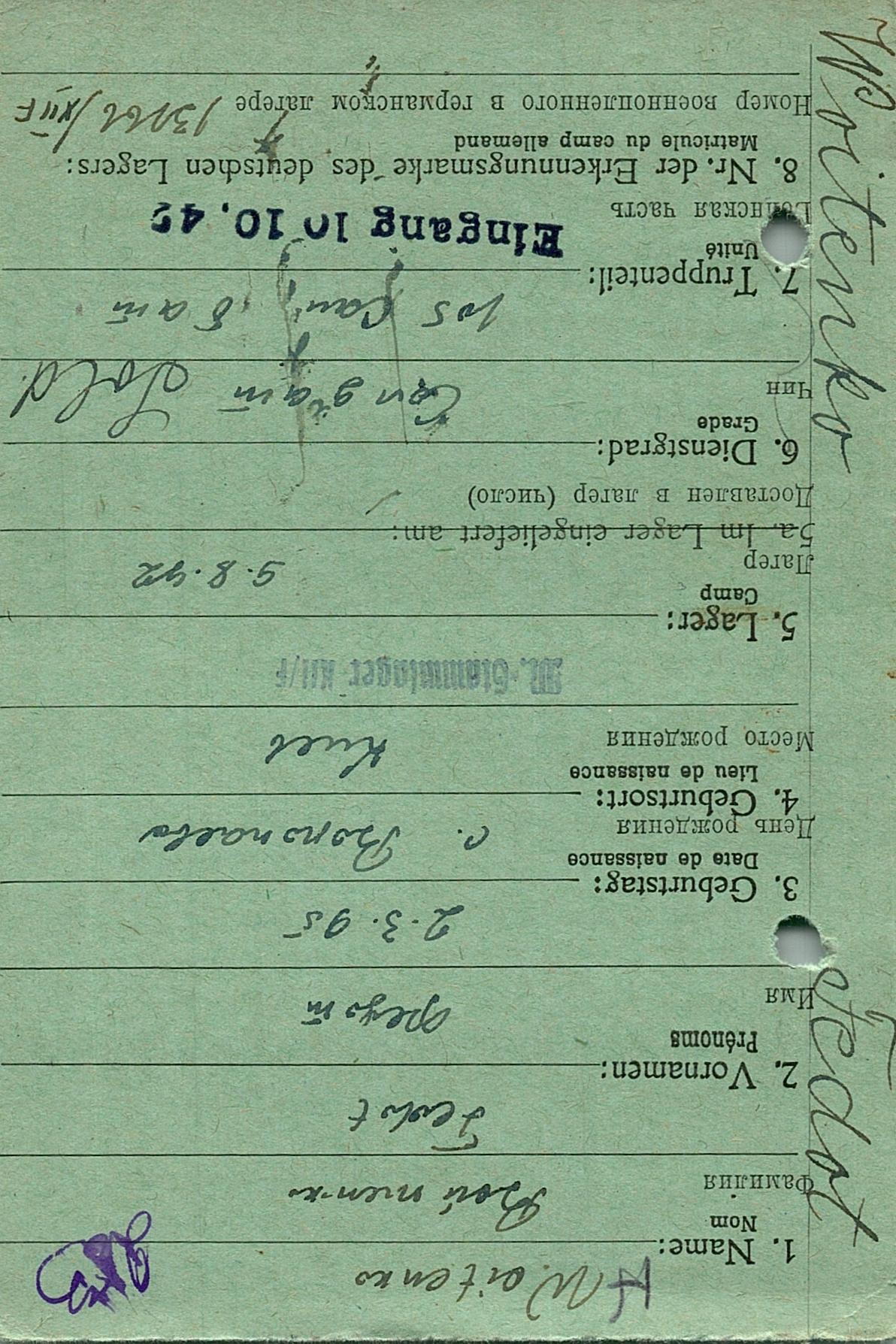 Военнопленные, трофейные карточки. Киевская обл.