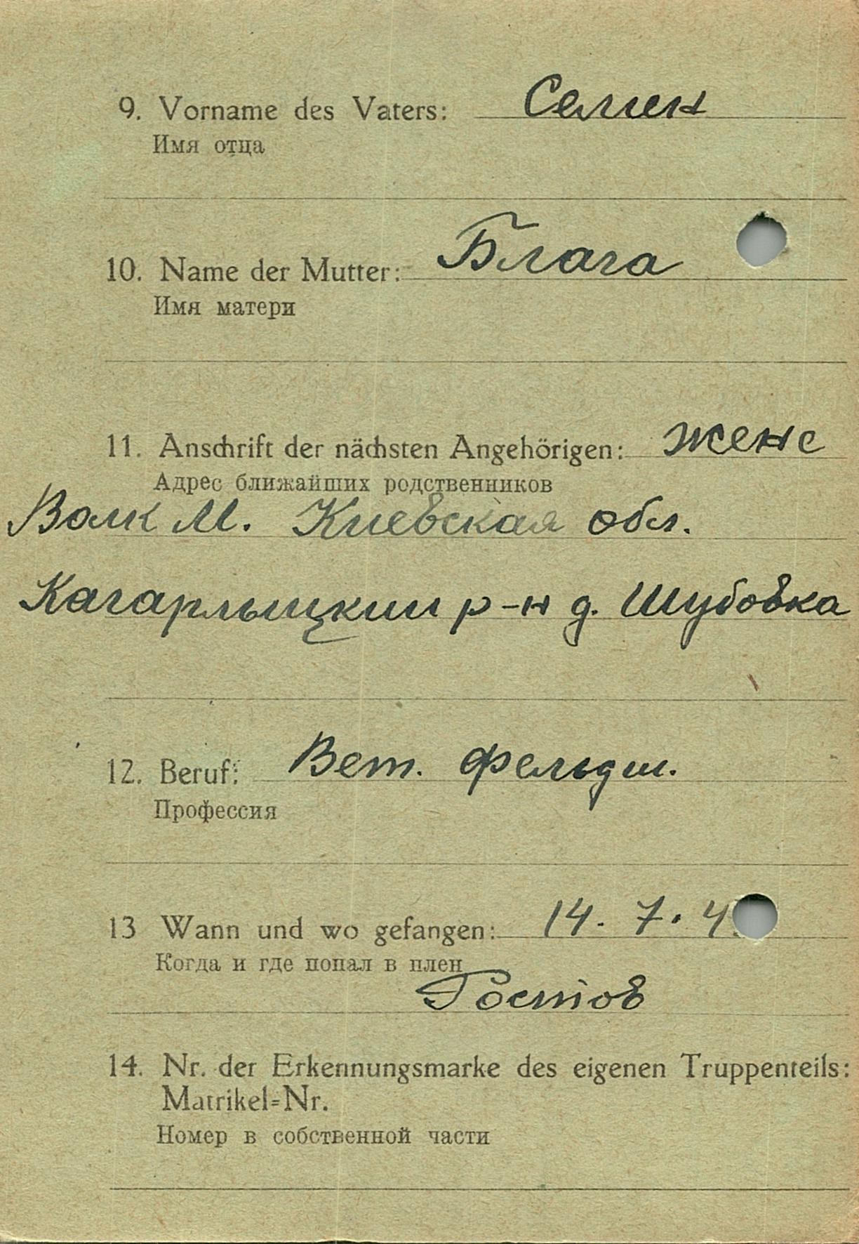 Военнопленные, трофейные карточки. Киевская обл.