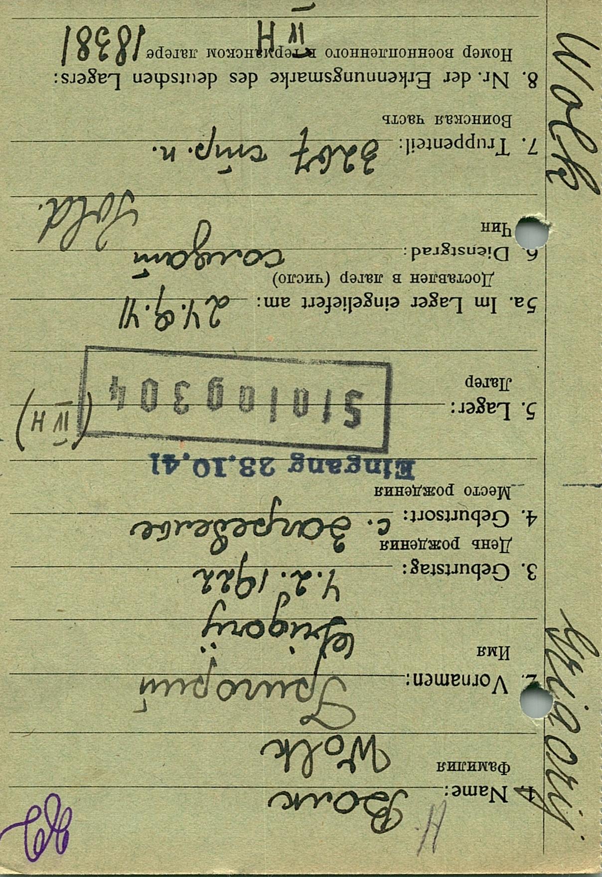 Военнопленные, трофейные карточки. Киевская обл.