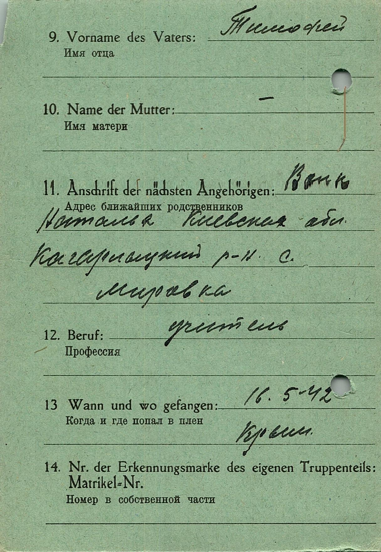 Военнопленные, трофейные карточки. Киевская обл.