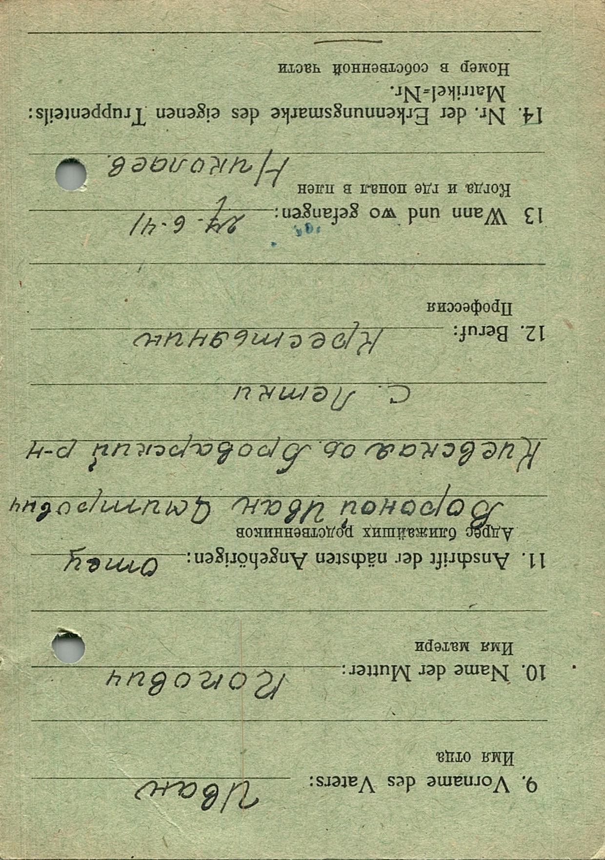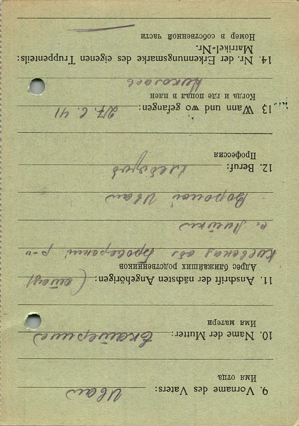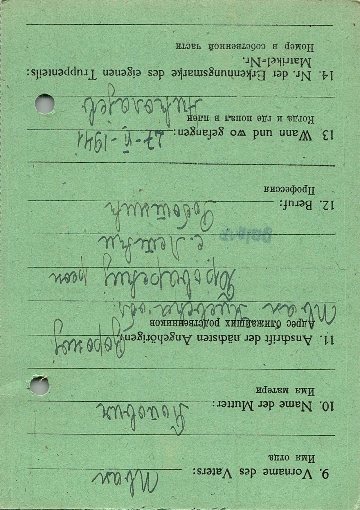 Военнопленные, трофейные карточки. Киевская обл.