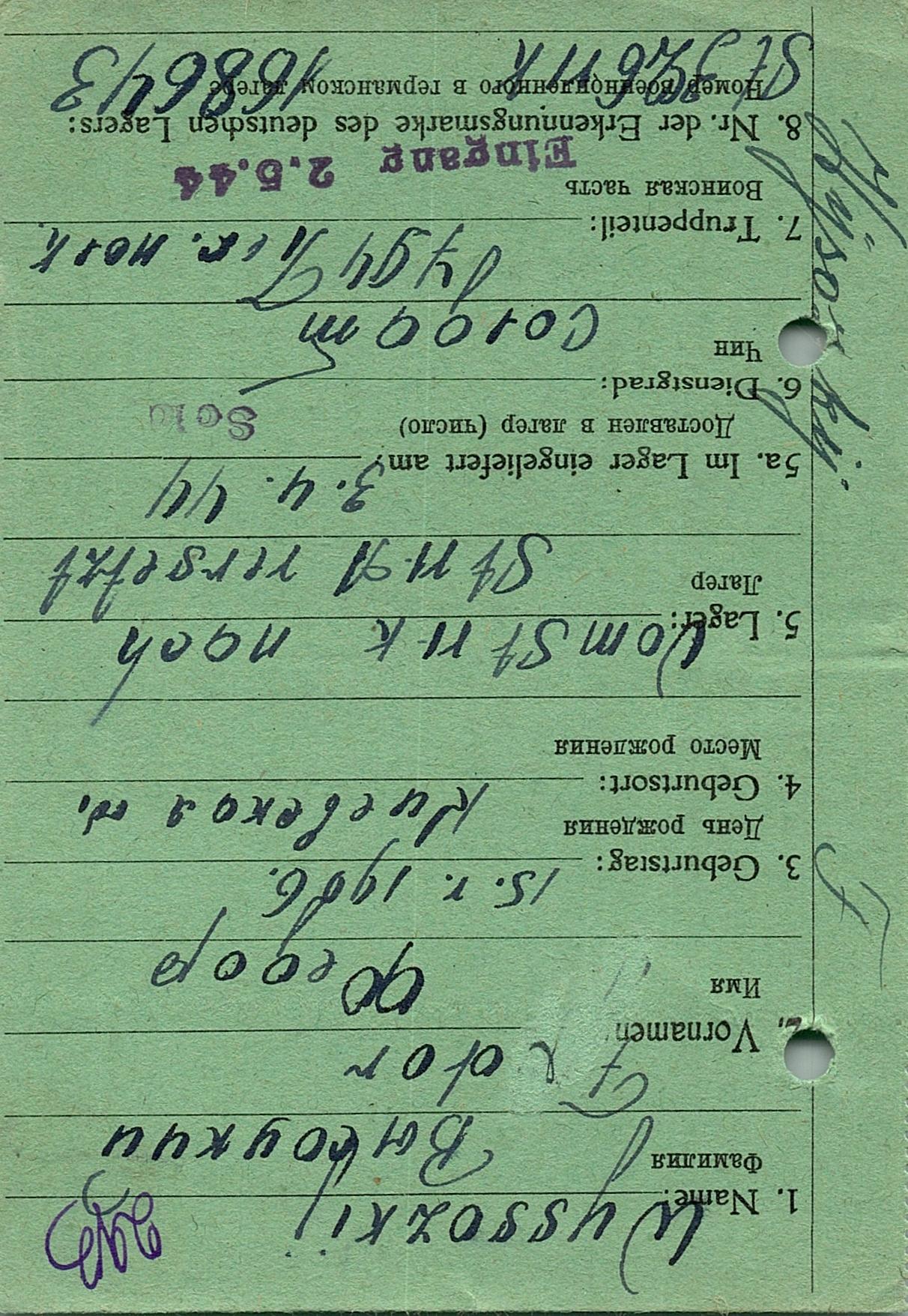 Военнопленные, трофейные карточки. Киевская обл.