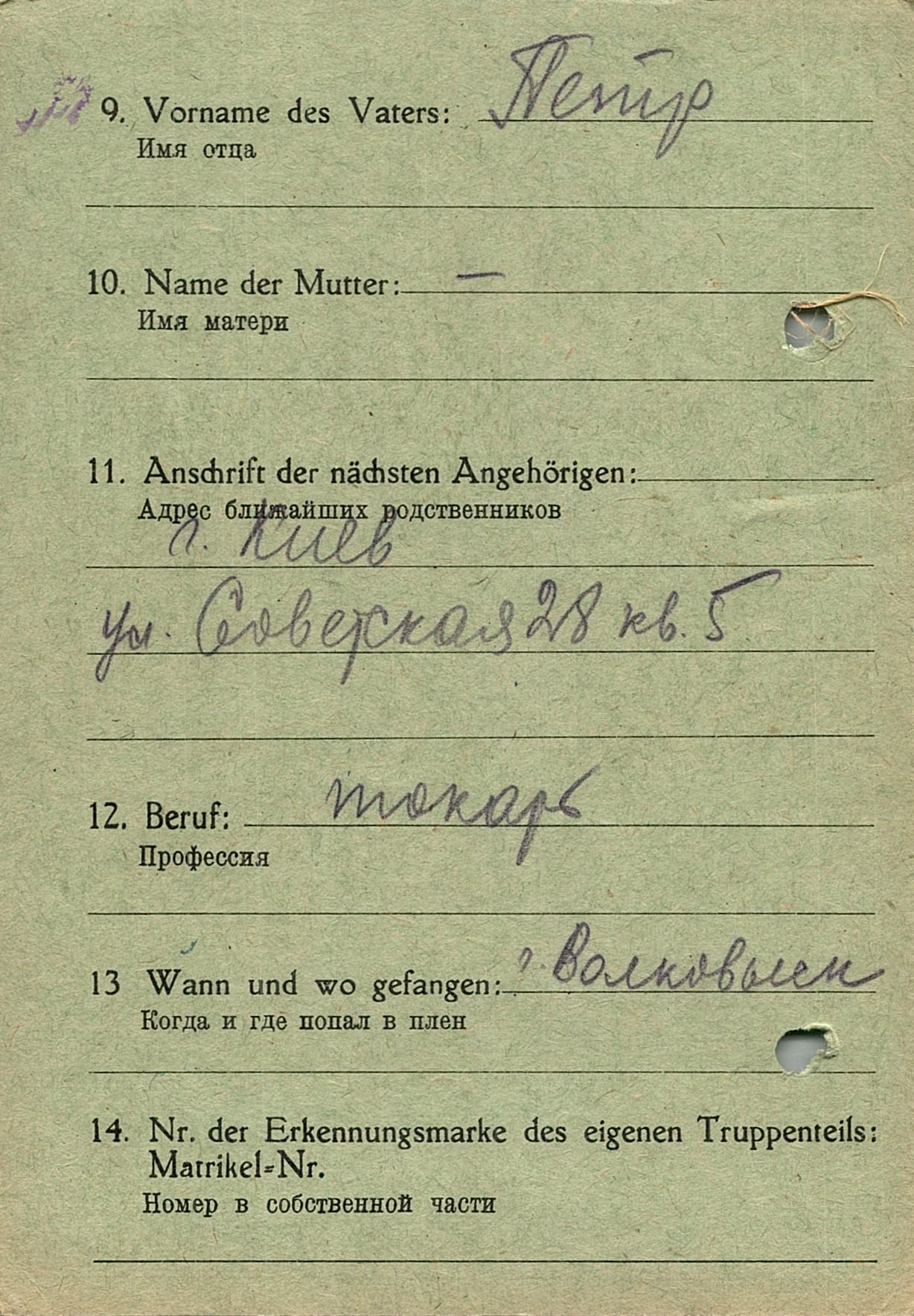 Военнопленные, трофейные карточки. Киевская обл.