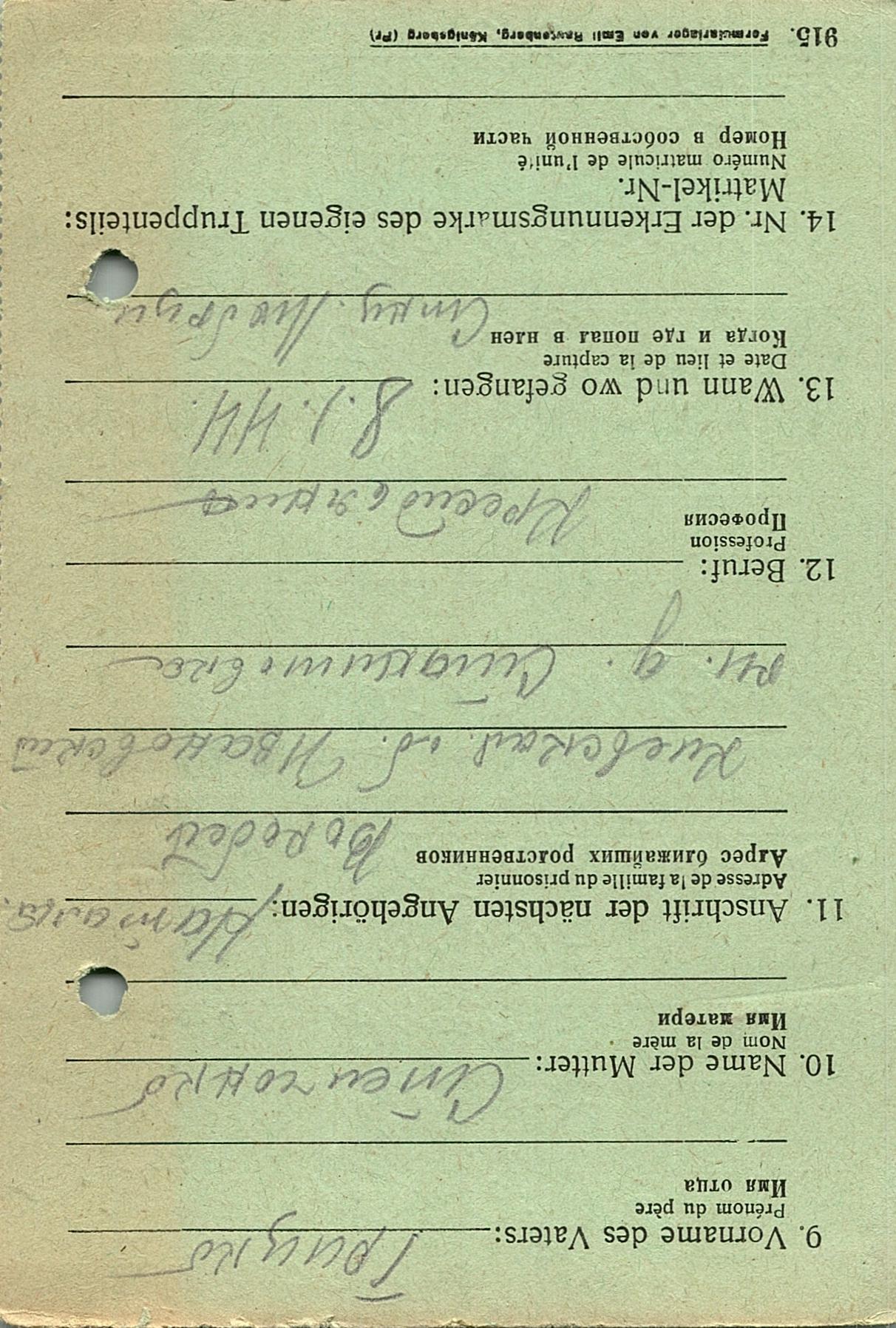 Военнопленные, трофейные карточки. Киевская обл.