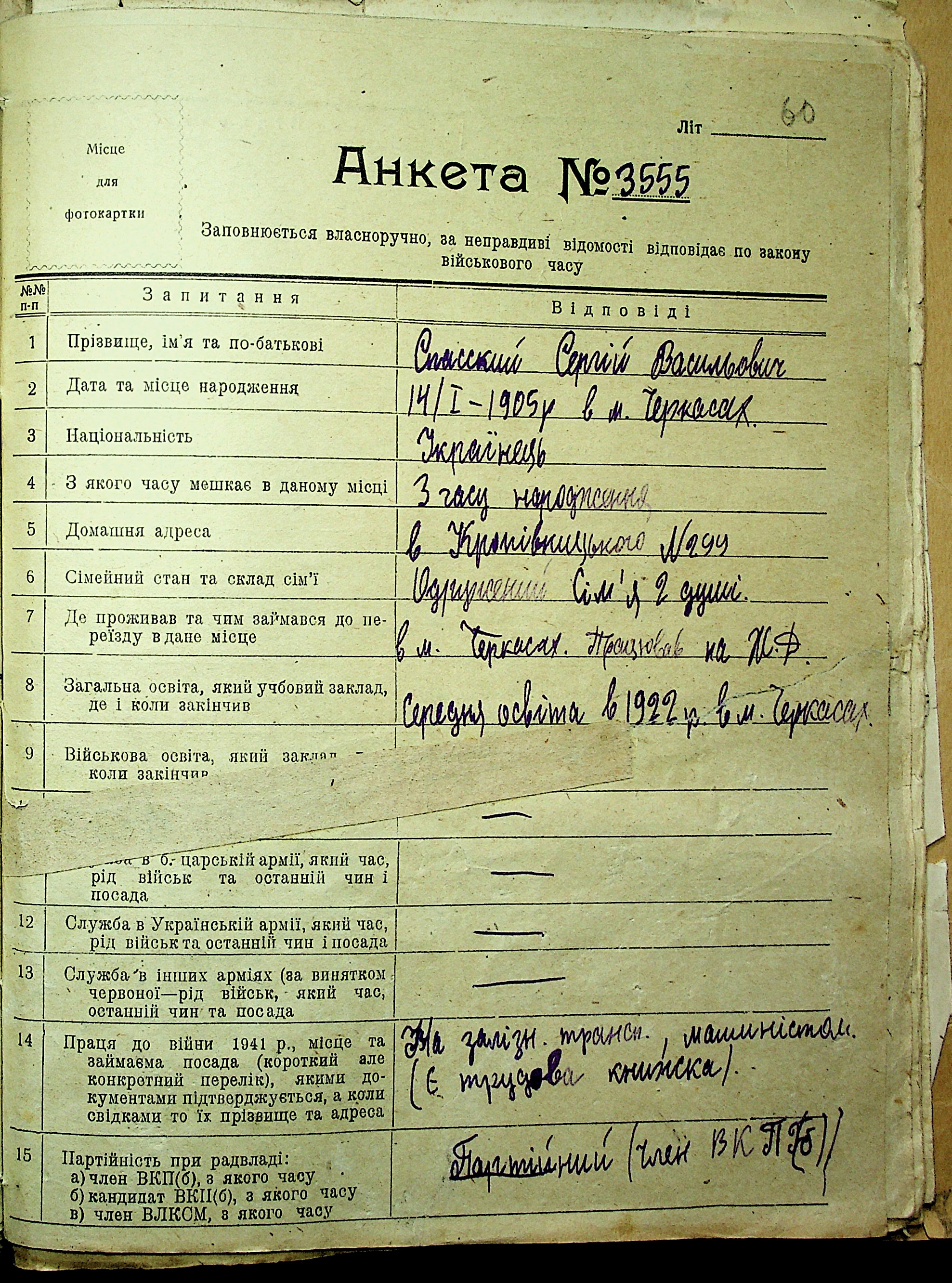 Анкеты жителей Черкасс (быв. военнопленные Красной армии, дезертиры)