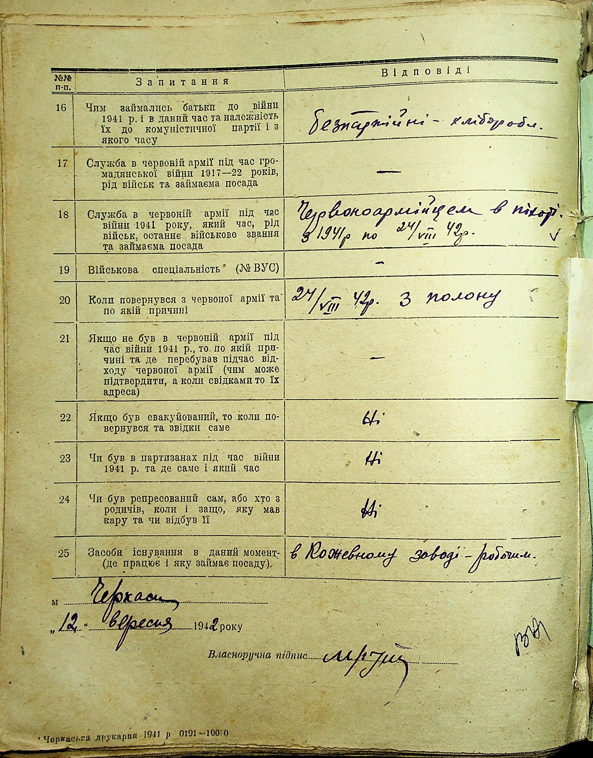Анкеты бывших военнопленных Красной армии, Ч-Я
